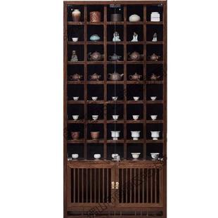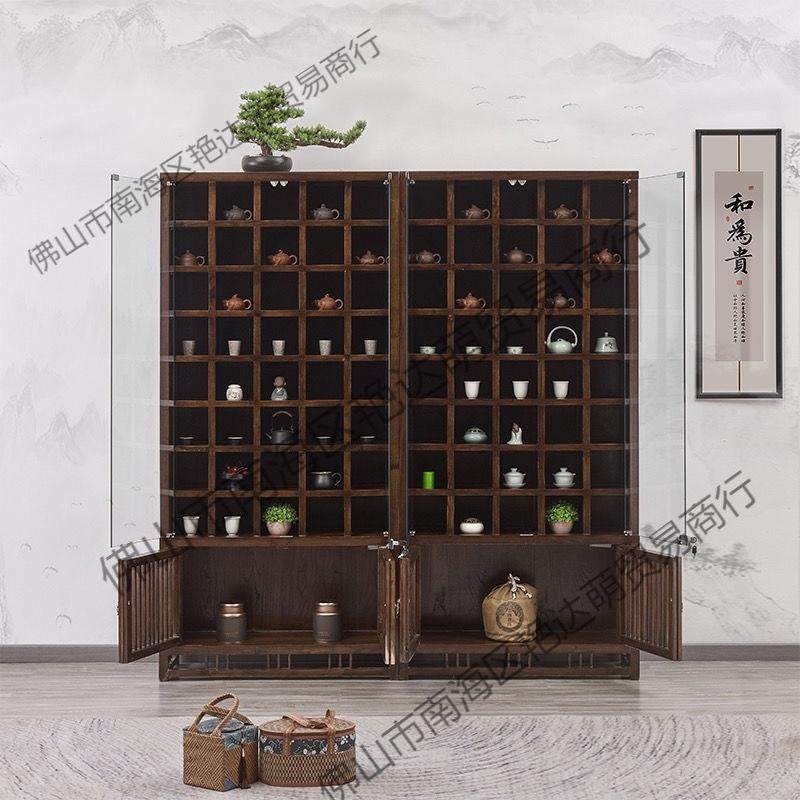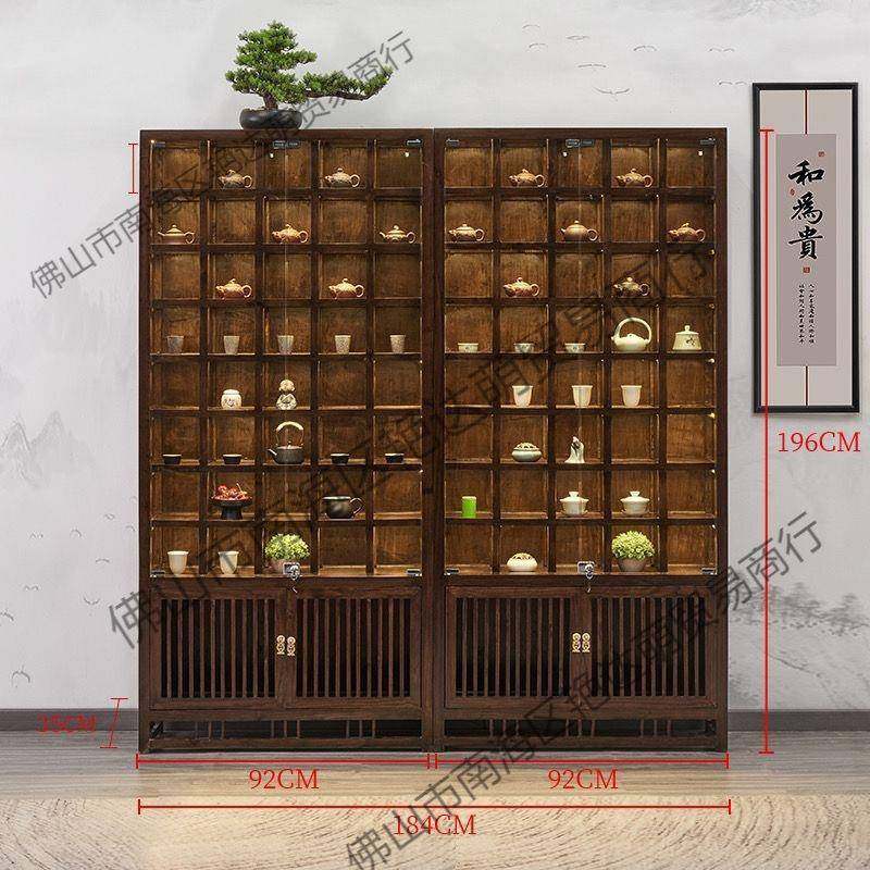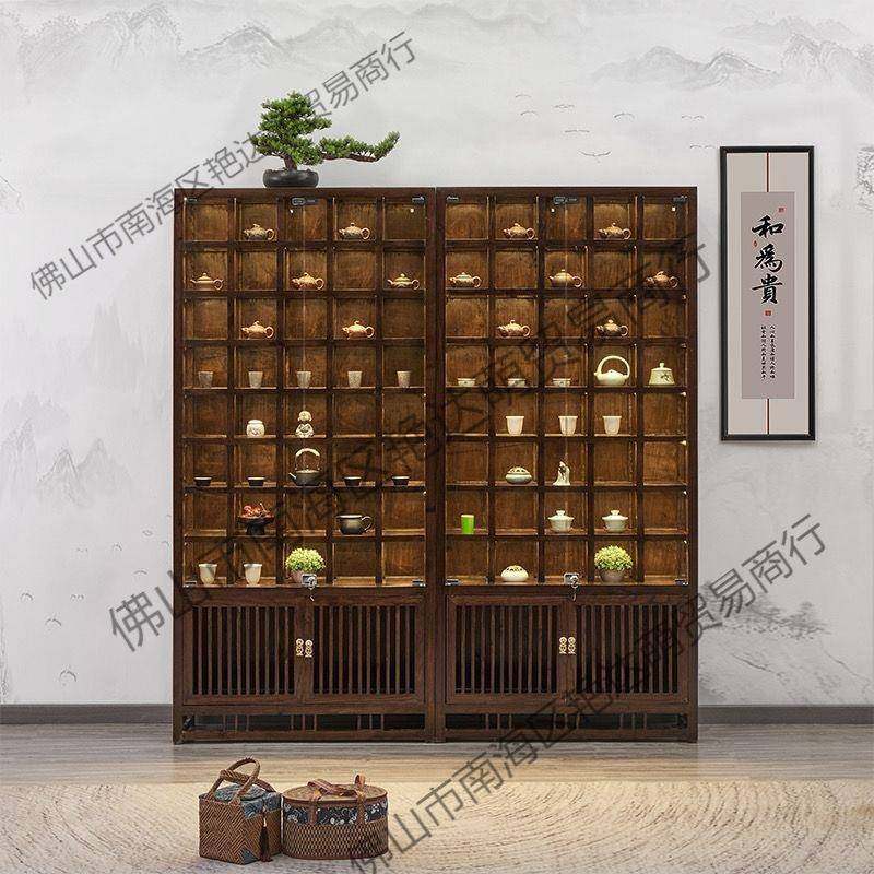 实木格子架紫砂壶玻璃展示架茶杯茶壶多宝阁新中式 南榆木博古架