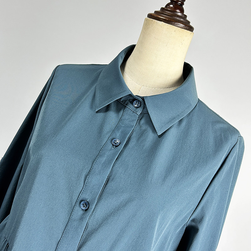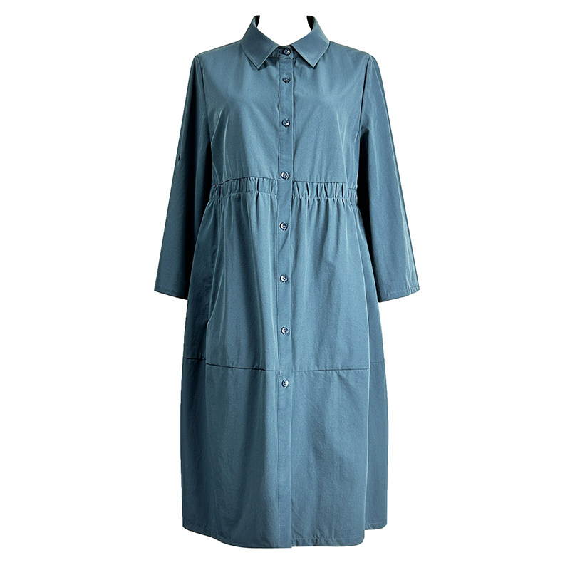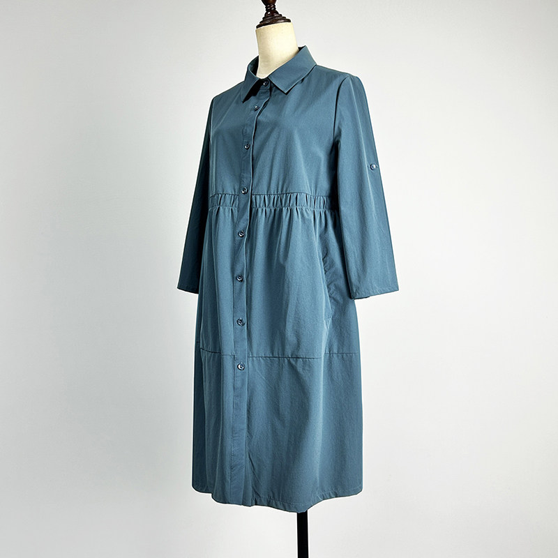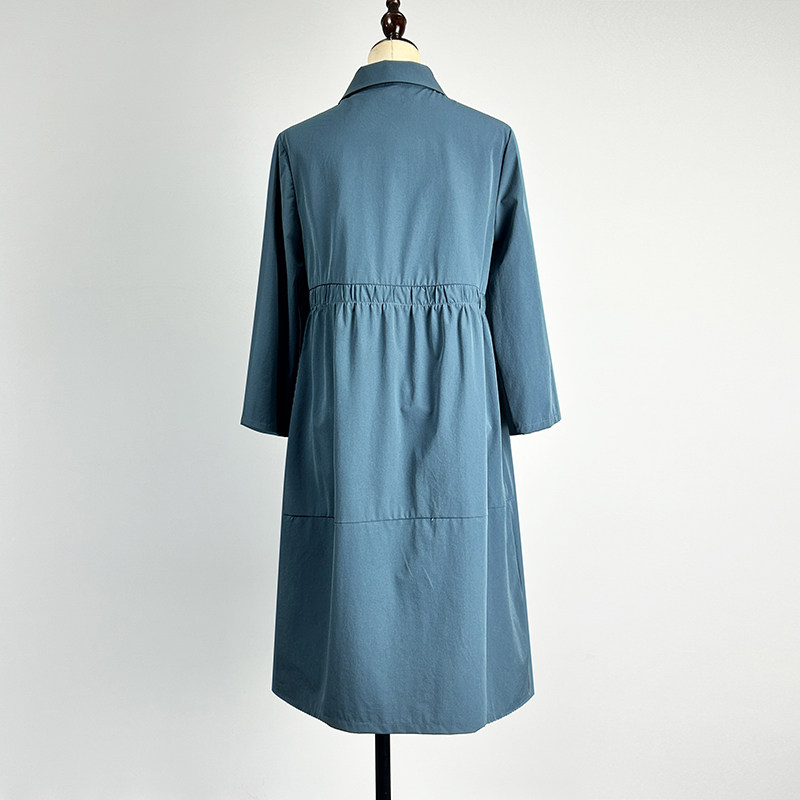 品牌中长款 风衣女2026松紧腰POLO领单排扣茧型宽松外套 蓝色九分袖