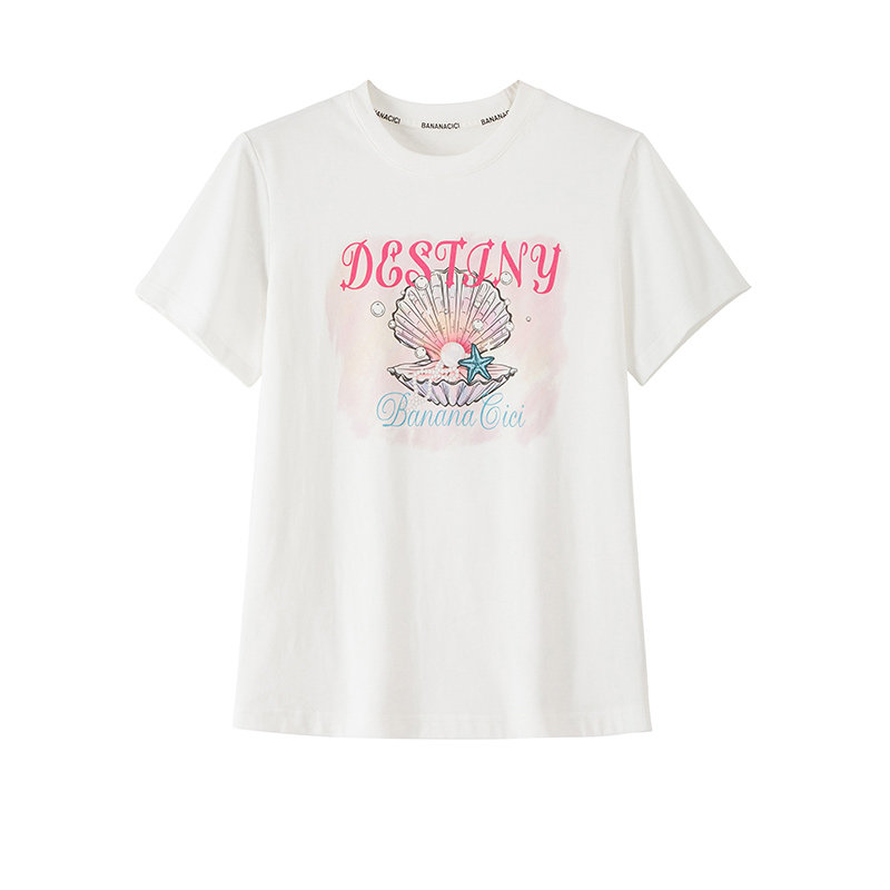 度假风贝壳字母印花纯棉宽松短袖 新款 T恤 CICI2026年春季 BANANA