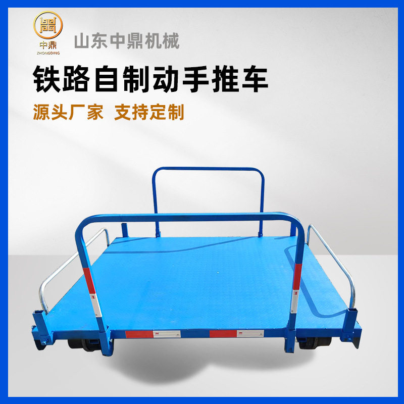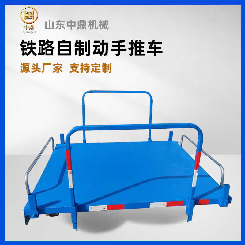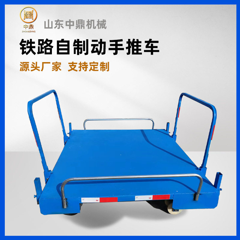 自制动刹车铁路手推车铁路1435轨道平板2t载重钢轨轨道物料运输车