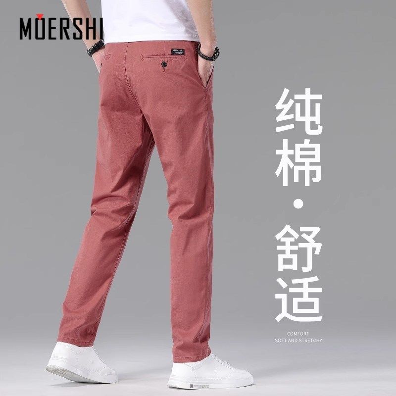 新款 直筒商务男裤 薄款 纯棉红色长裤 中腰休闲裤 2025夏季 男士 子男款