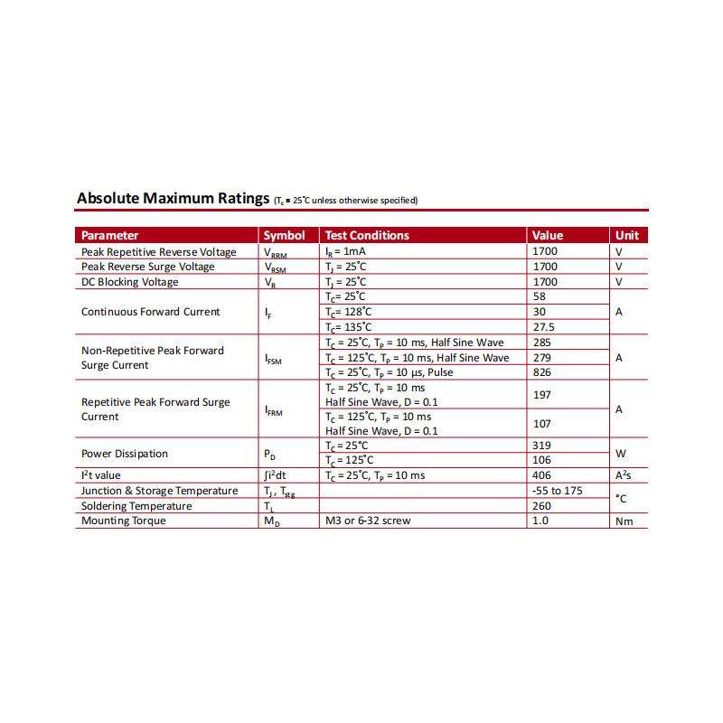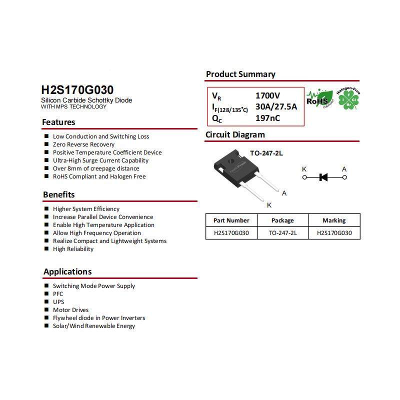 国产SICH2S170G030TO 2L1700V30A碳化硅肖特基二极管 247