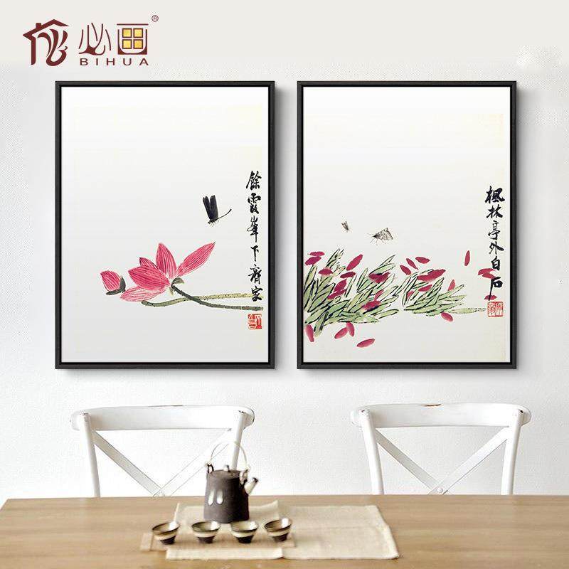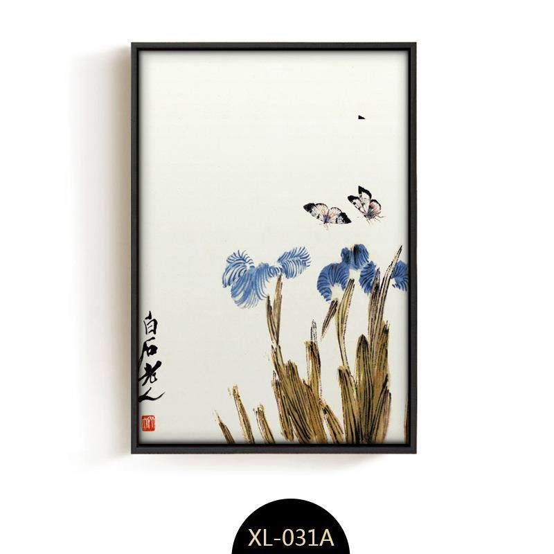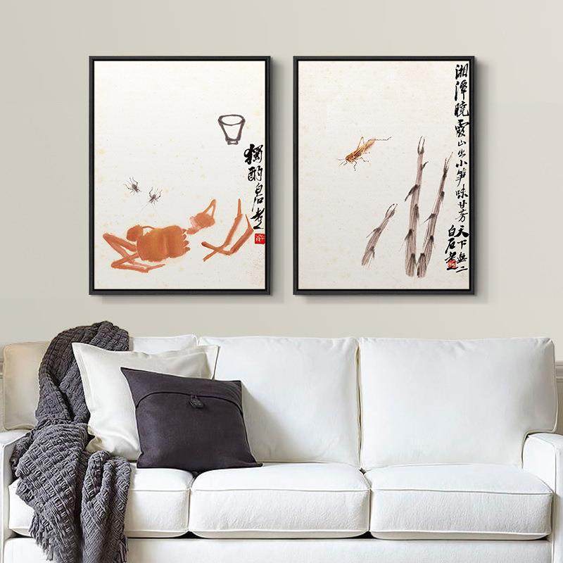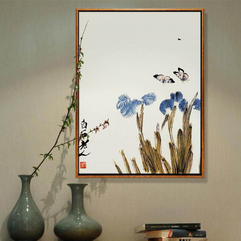 齐白石老人古韵中式 饰画有框画禅意简约书房挂画办公室玄关壁画 装