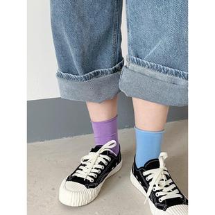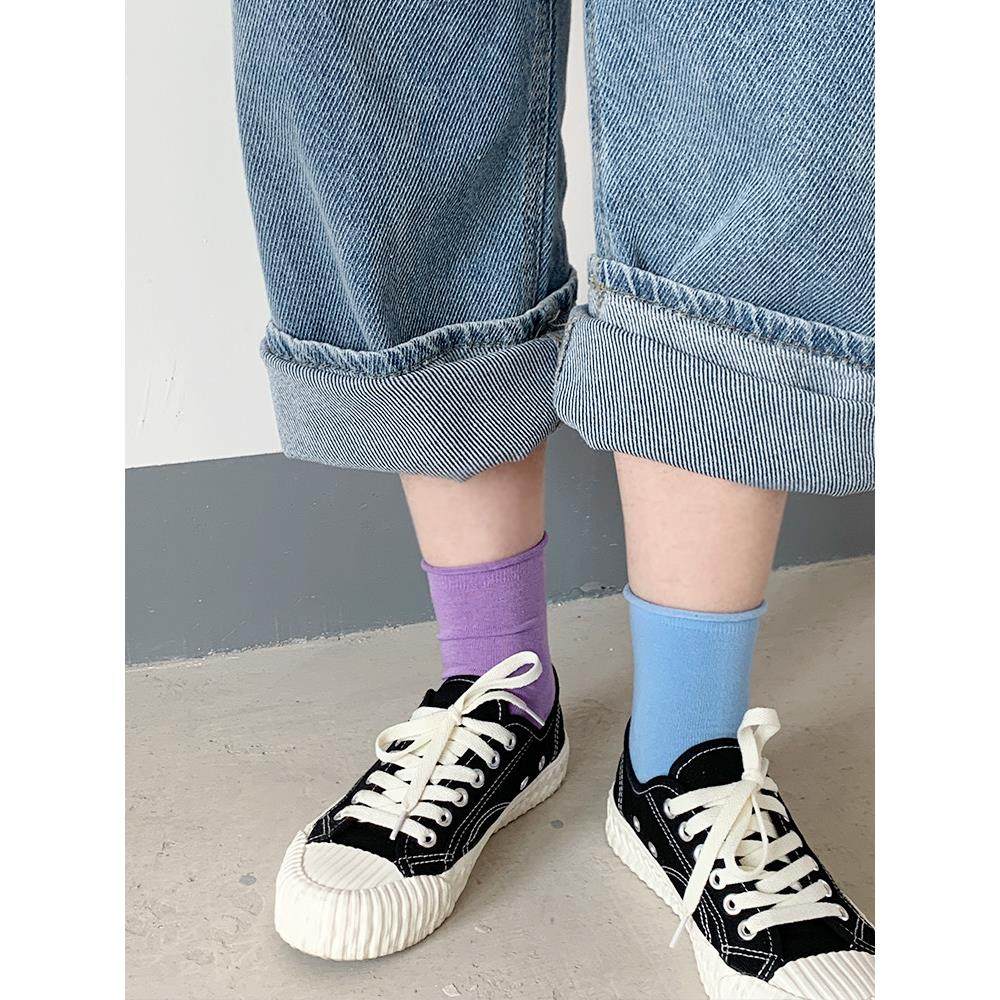 韩版 防臭吸汗休闲竖条纹堆堆月子袜纯糖果色 女士中筒长袜子春秋款