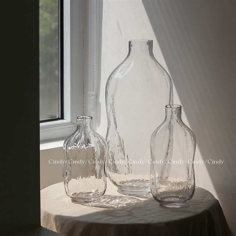 高级感简约创意不规则民宿花瓶透明玻璃客厅桌面插花水养装 饰摆件