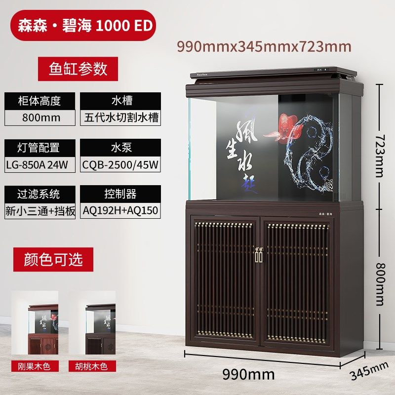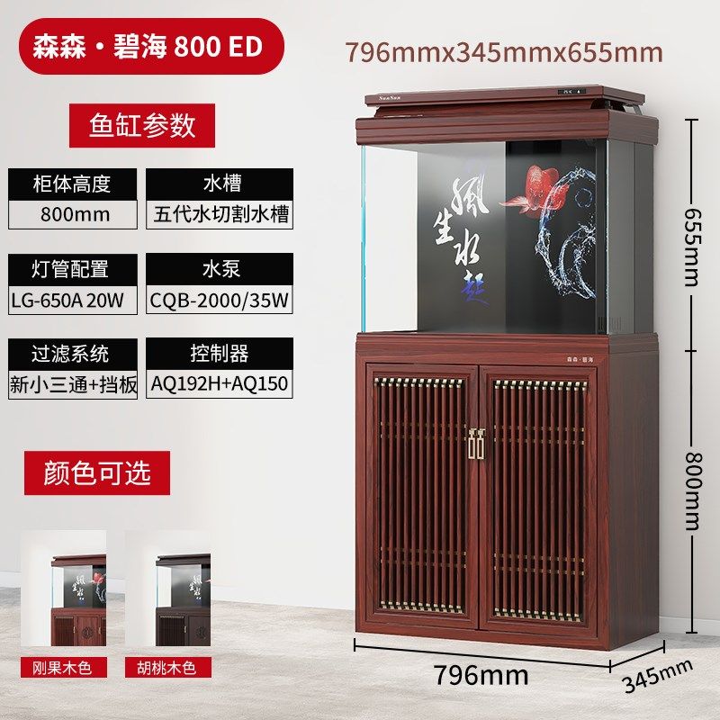 25新款 超白鱼缸客厅大型玻璃生态五代底过滤龙鱼缸水族箱 中式