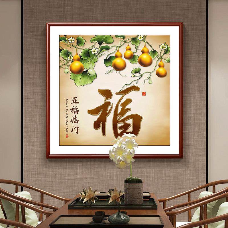 画丰 画中包厢饭厅百财福禄饭厅新挂画 画 画正方形事事如意壁画