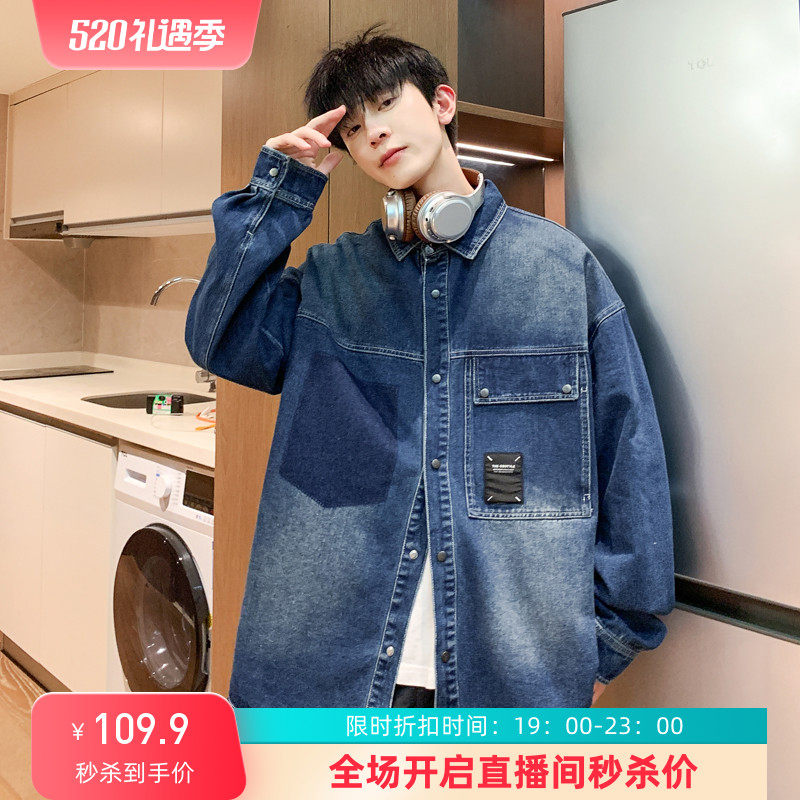 幼悠男童加绒加厚美式 潮酷有型宽松落肩休闲上衣 复古牛仔外套冬季