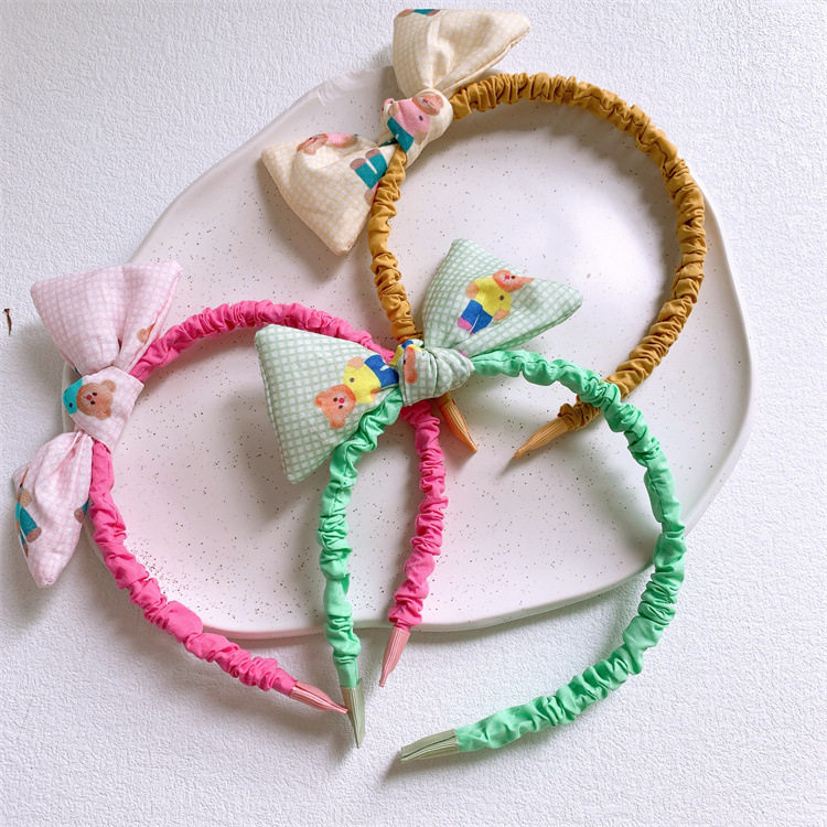 新款 头扣发卡 儿童布艺蝴蝶结发箍头饰可爱女童卡通小熊头箍亲子款