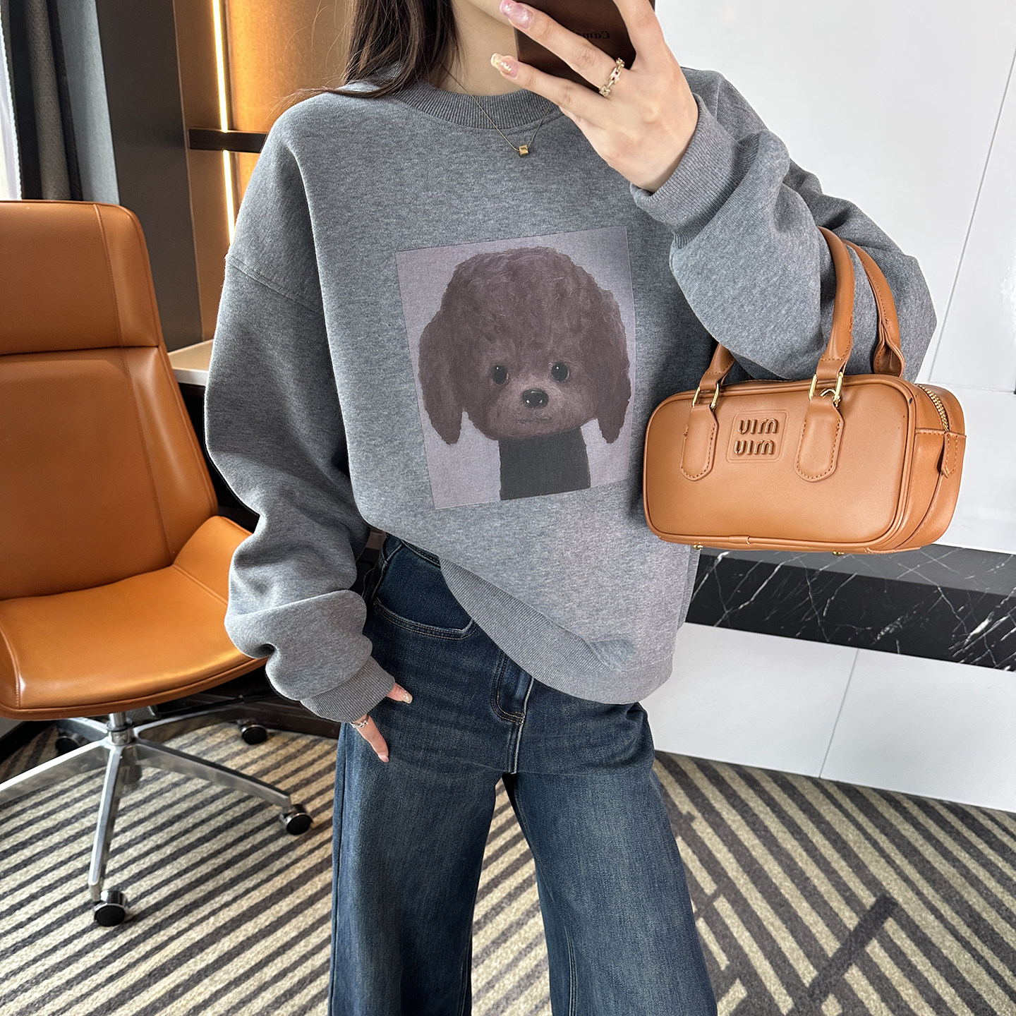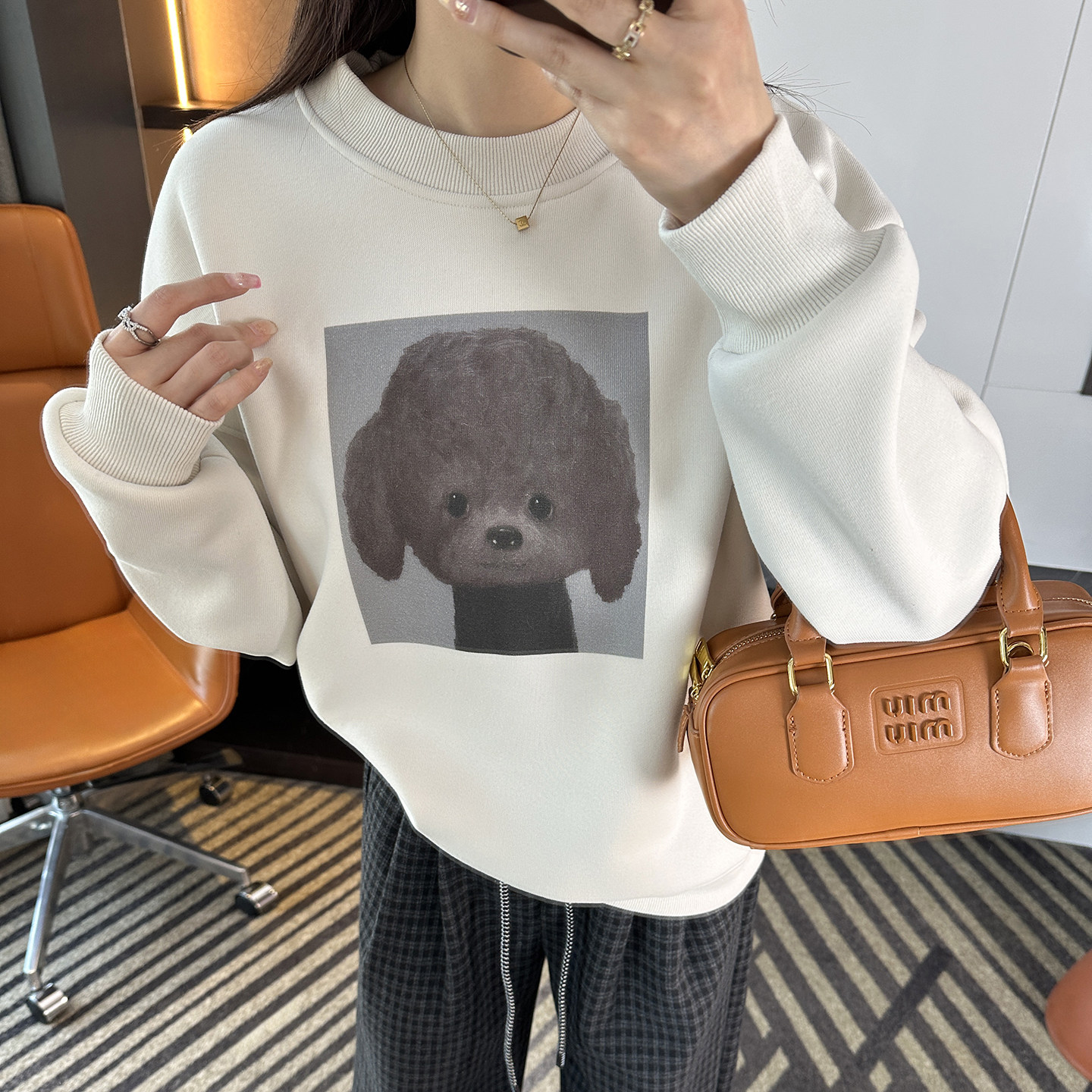暖冬治愈系 上衣 卷毛狗圆领加绒卫衣女2025新宽松慵懒百搭长袖