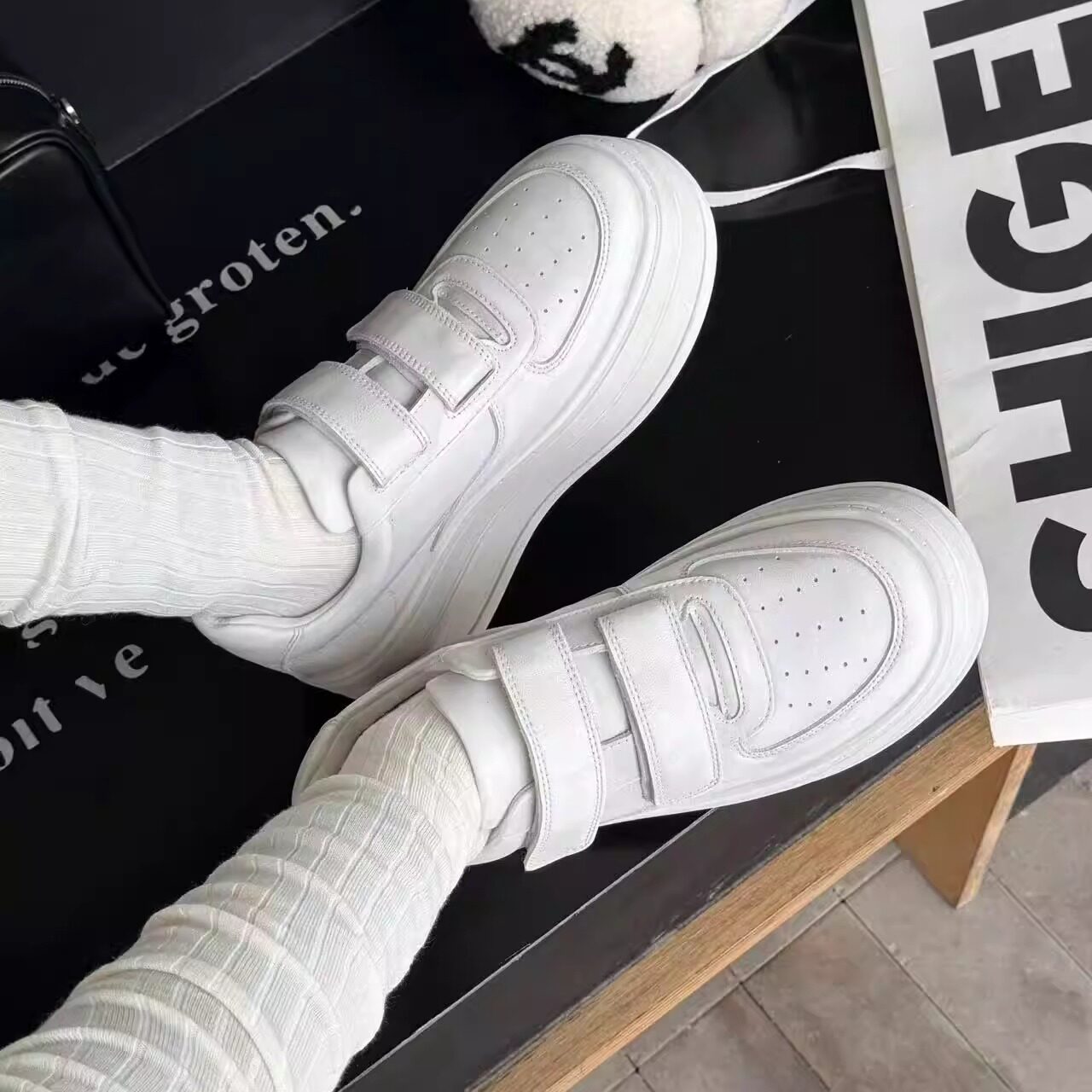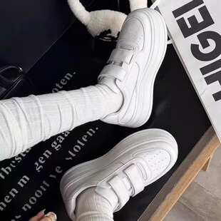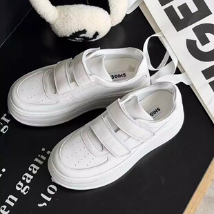 女百搭休闲小白鞋 诗歌兰女鞋 魔术贴厚底松糕鞋 真皮韩版 2026年新款