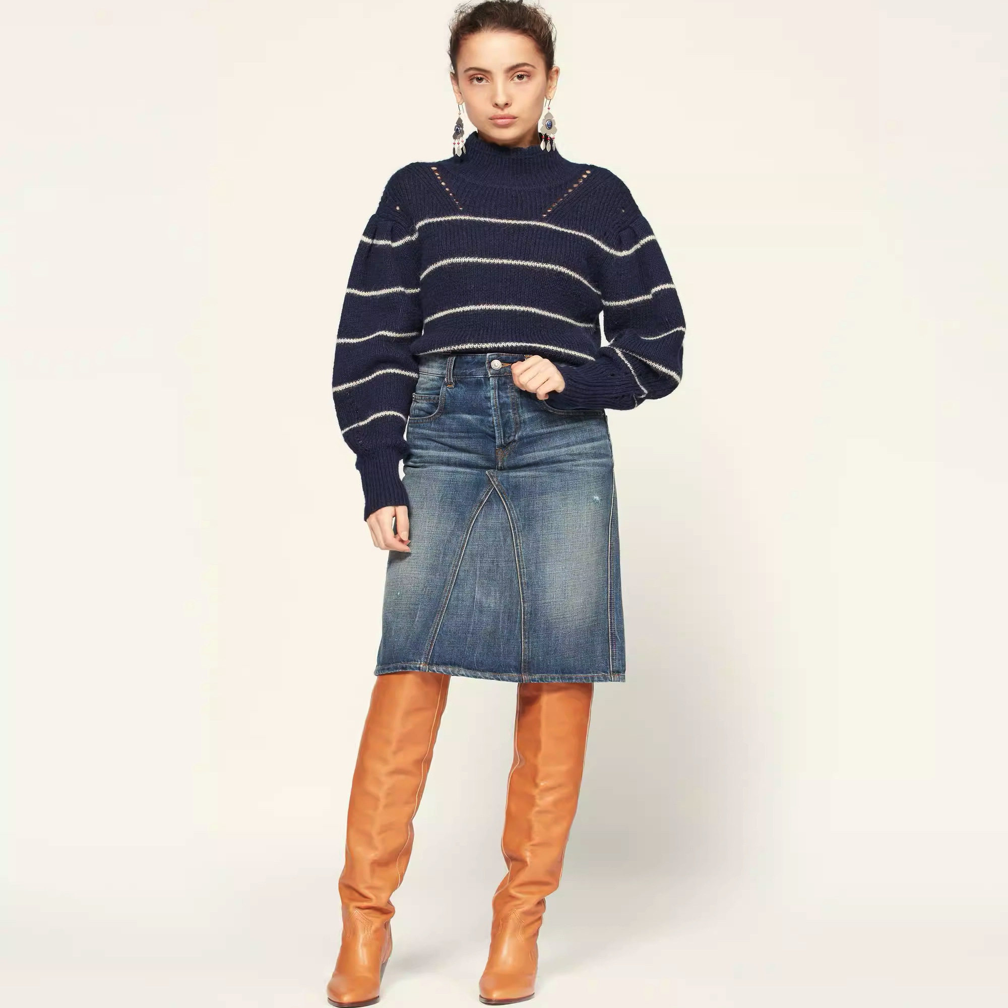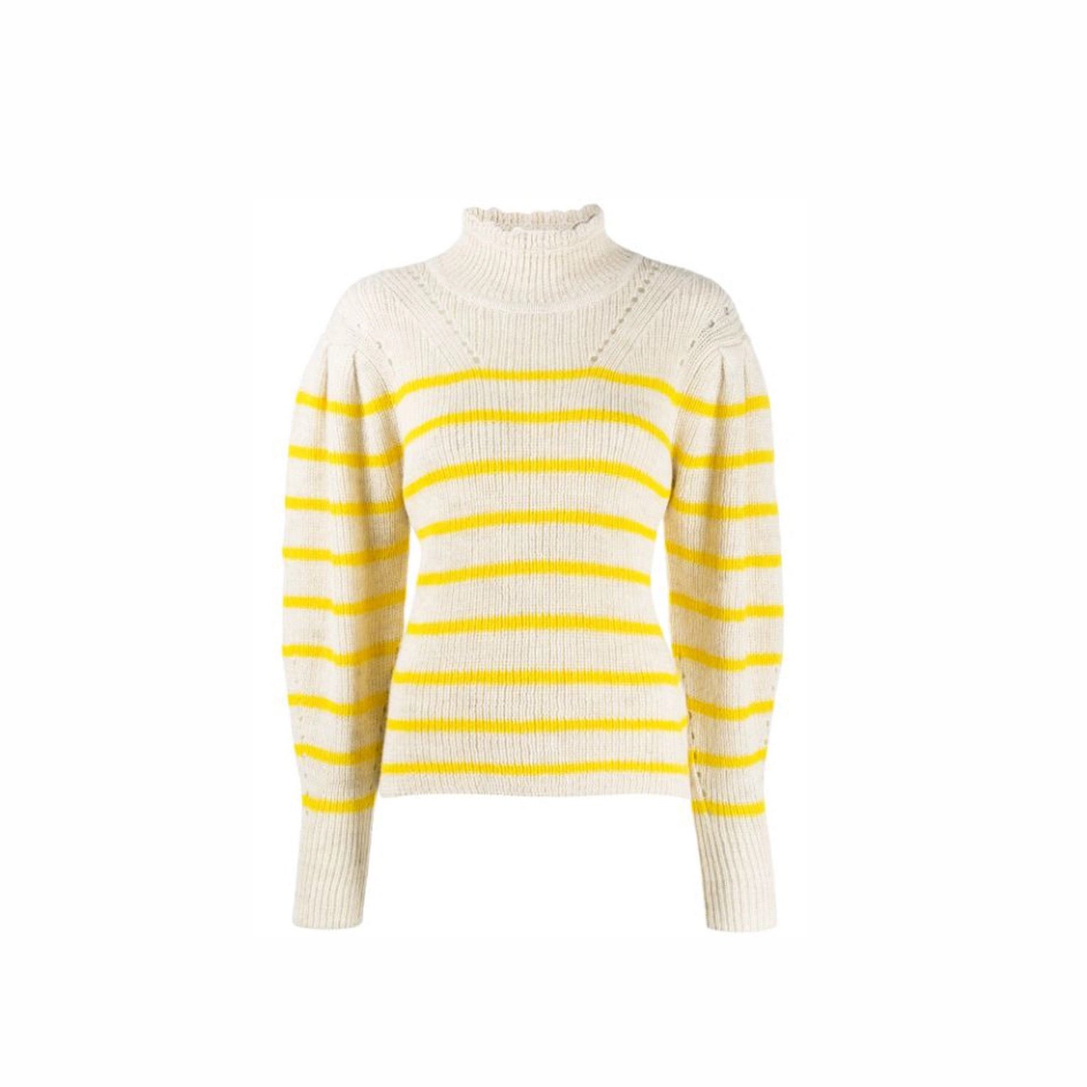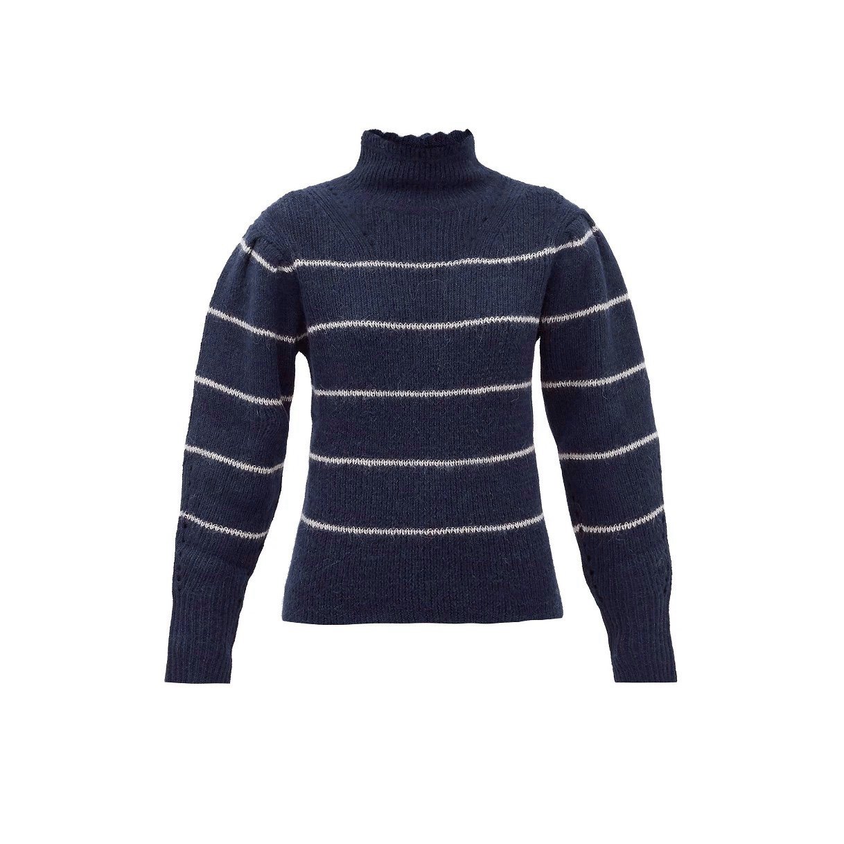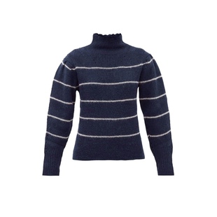 女款 针织衫 georgia 短款 毛衣 复古花边高领条纹灯笼袖 法系IM