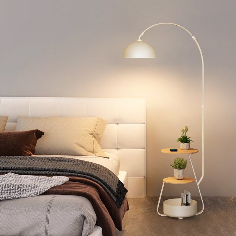 现代简约白色金属落地灯客厅卧室置物功能灯慵懒风高级感