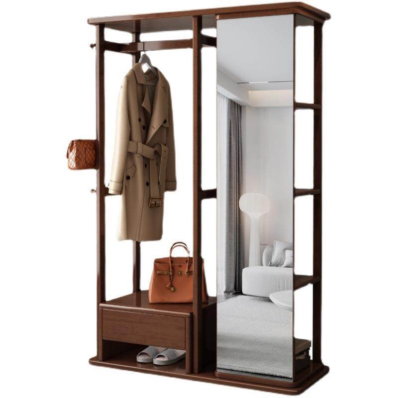 全身镜实木穿衣镜家用卧室落地挂衣架立式 试衣镜带镜一体衣帽架