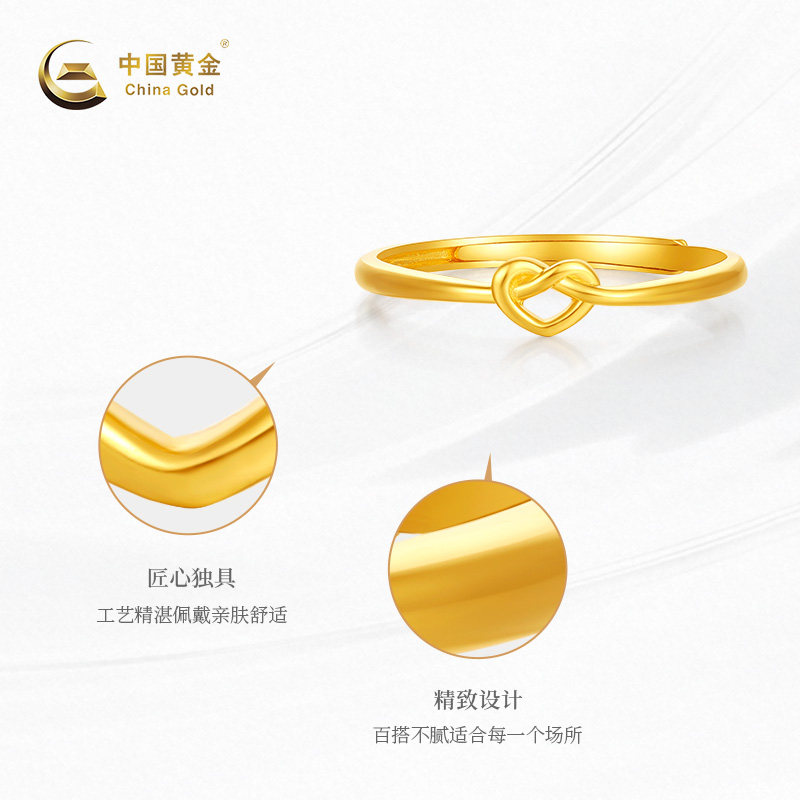百搭送礼 黄金戒指爱心环绕足金5G戒指新品 中国黄金官方店