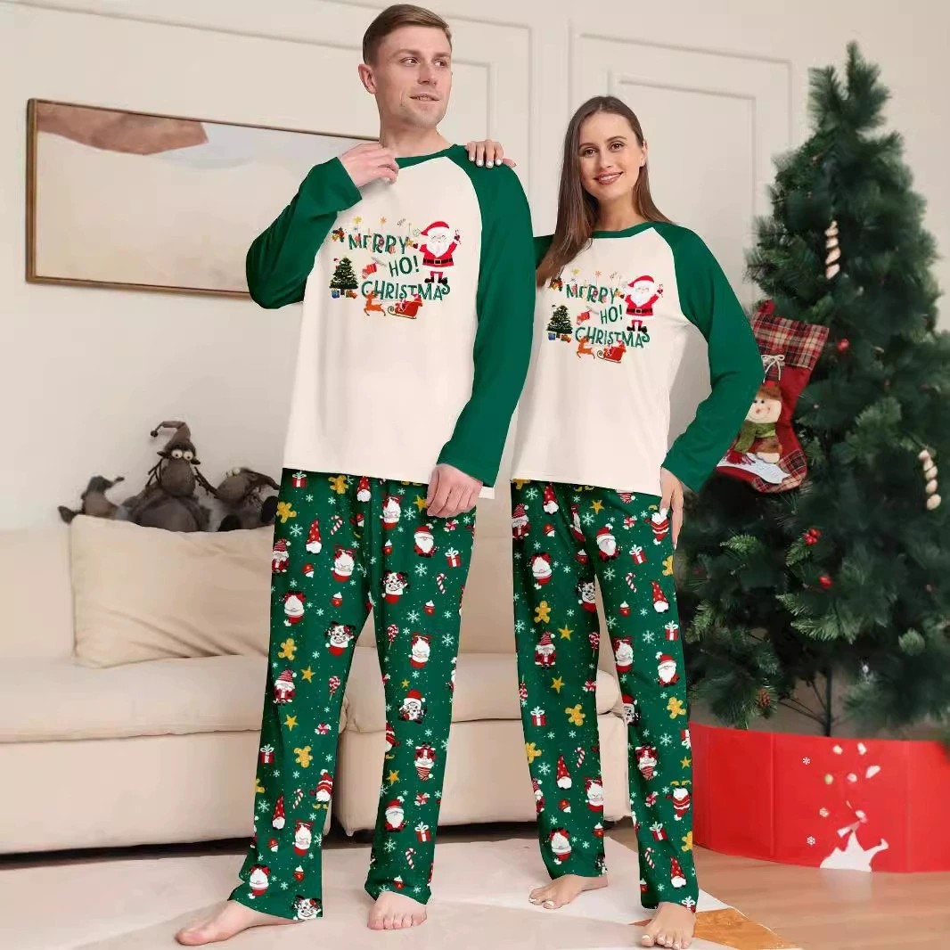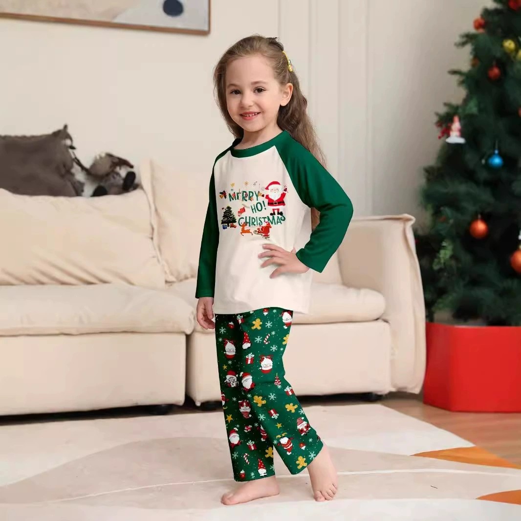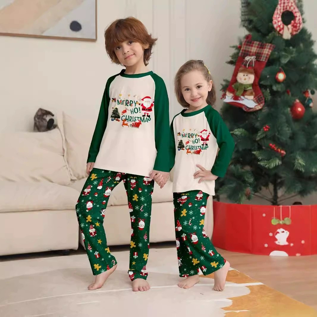 Family Letter Pajamas Long Pants Snowflake Sleeve Santa