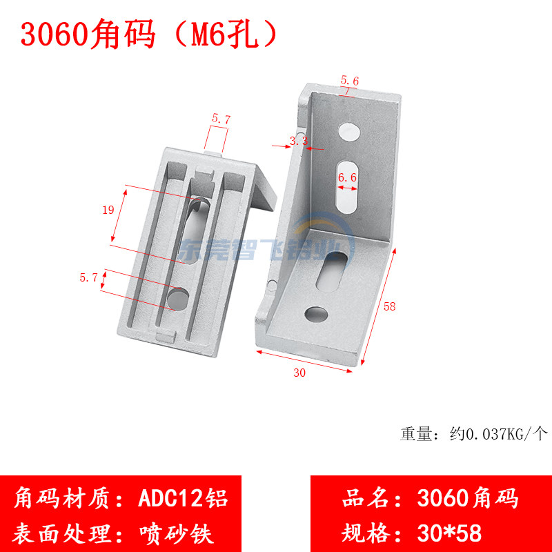 4080角码 工业铝型材配件306y0m6孔直角铝角件重型加厚连接件铝角
