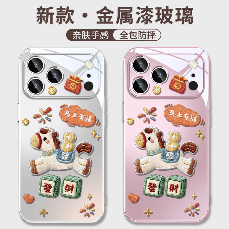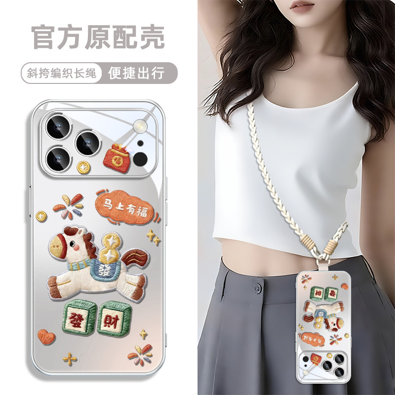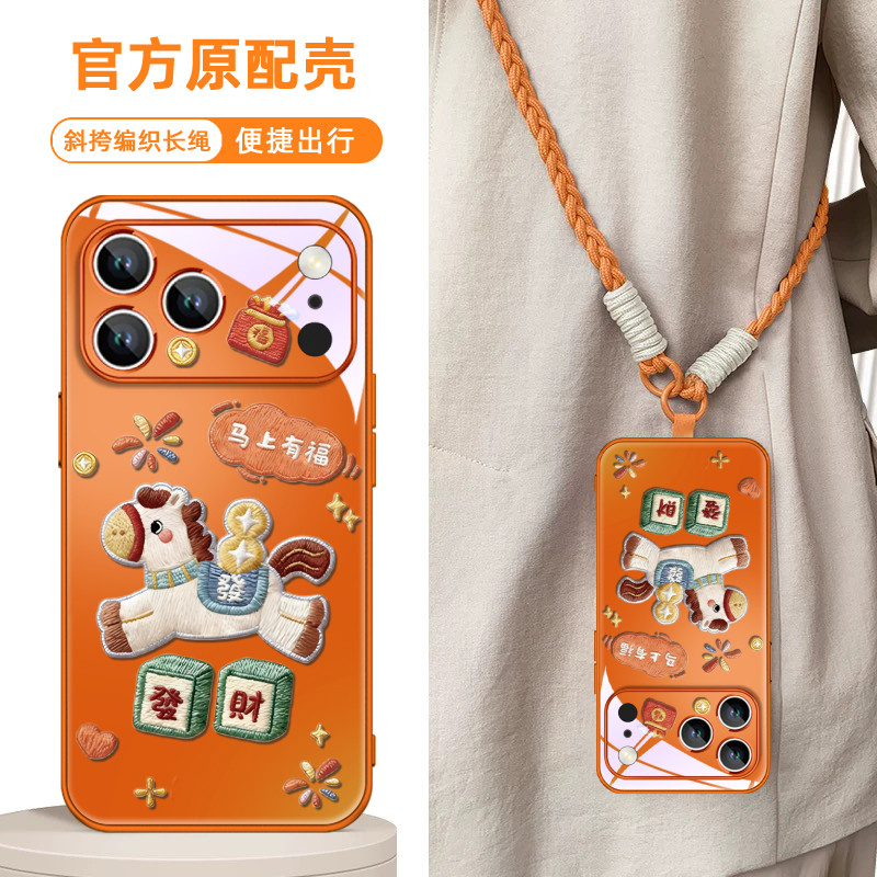 马年新年款 适用iphone16苹果17promax手机壳13本命年plus红色15橙air带挂绳斜挎14过年12好运11发财xs新款