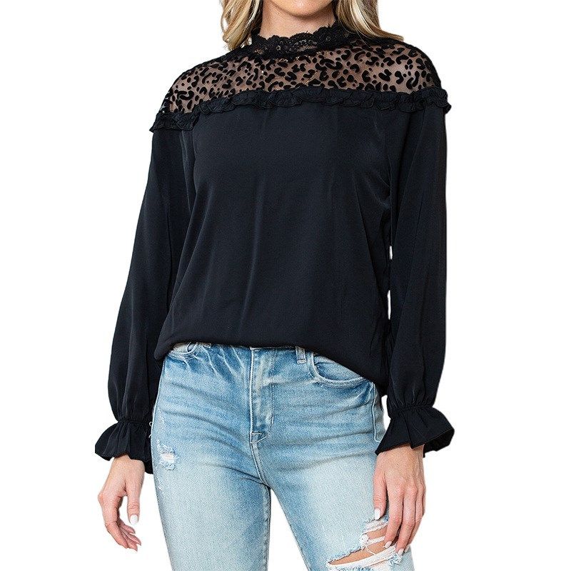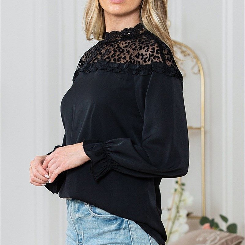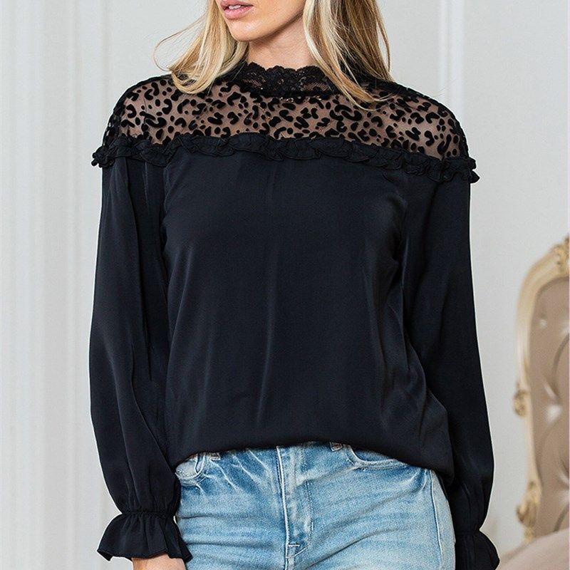 Design Ruffle Pullover Leopard Patchw 2025 Print Fashionable
