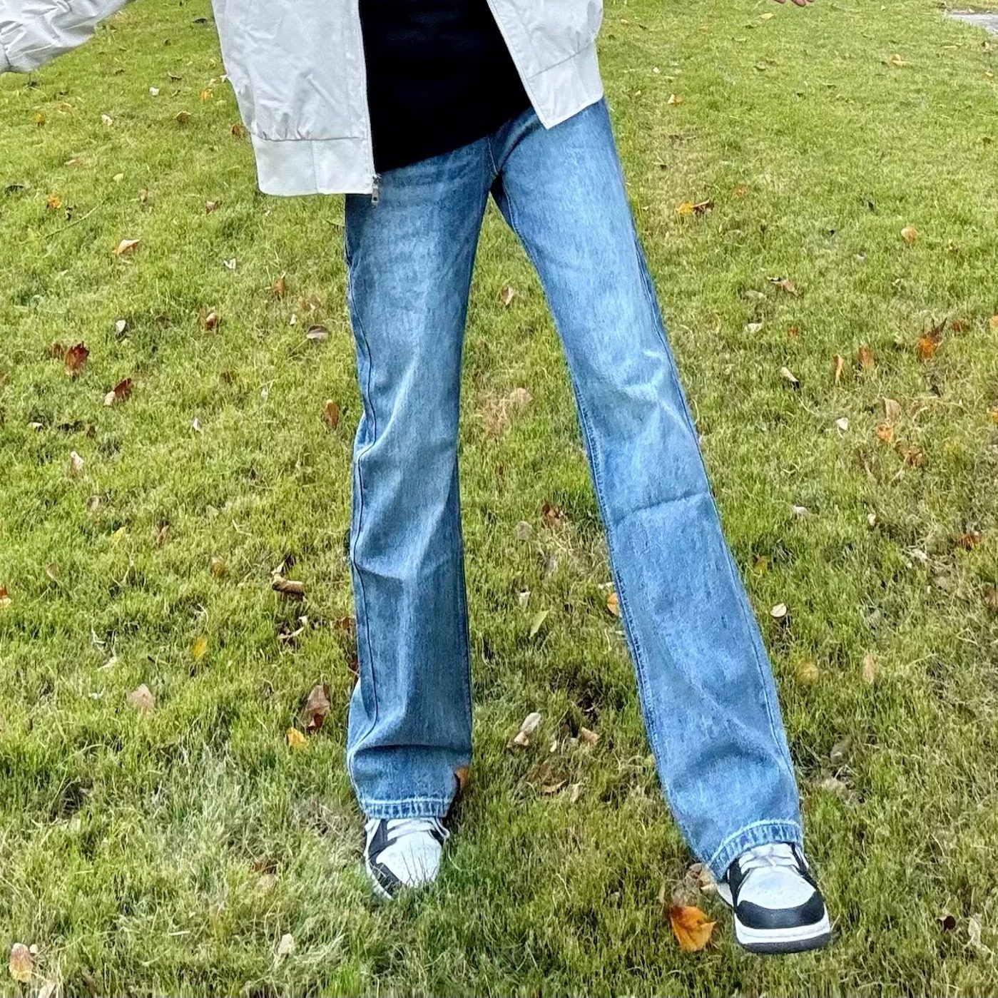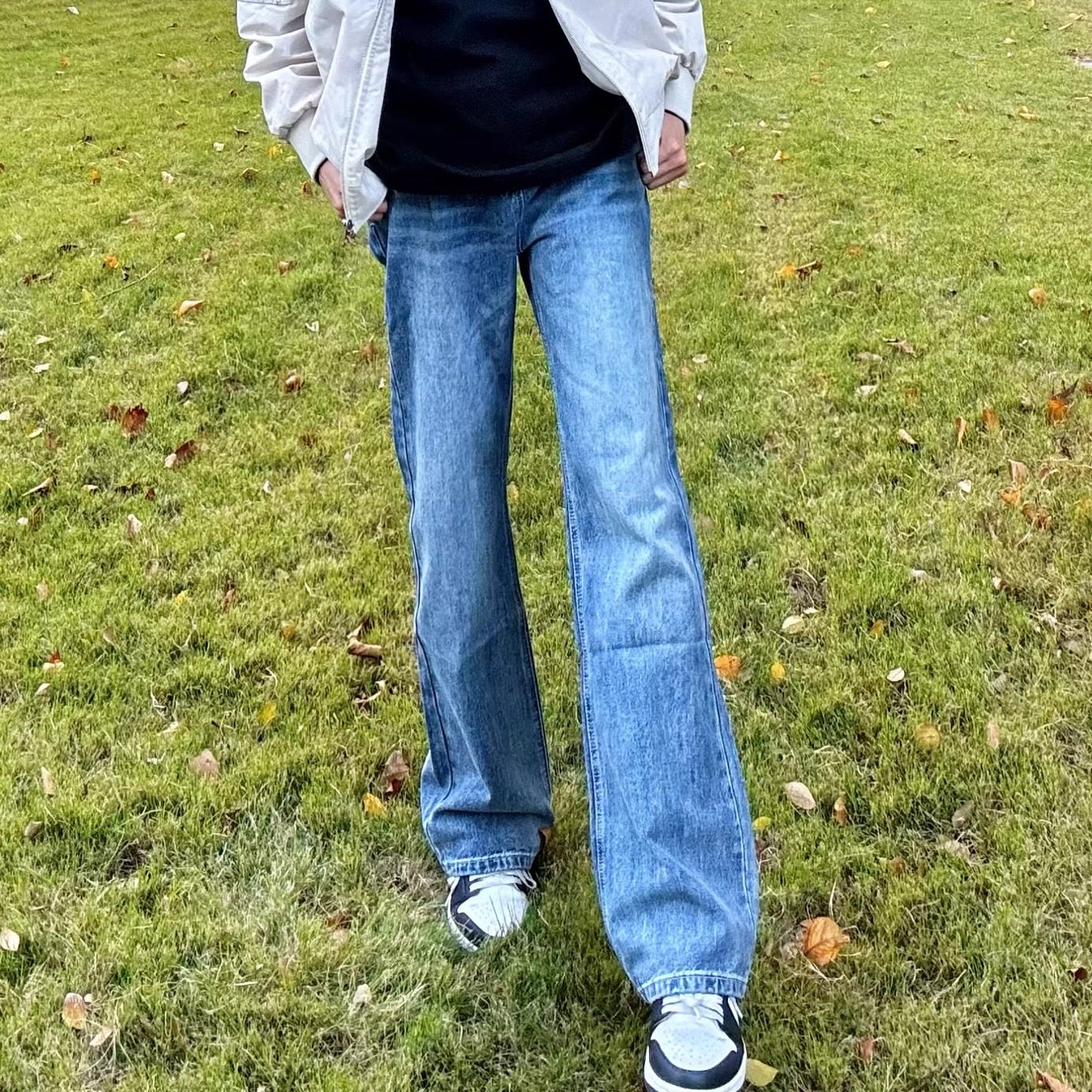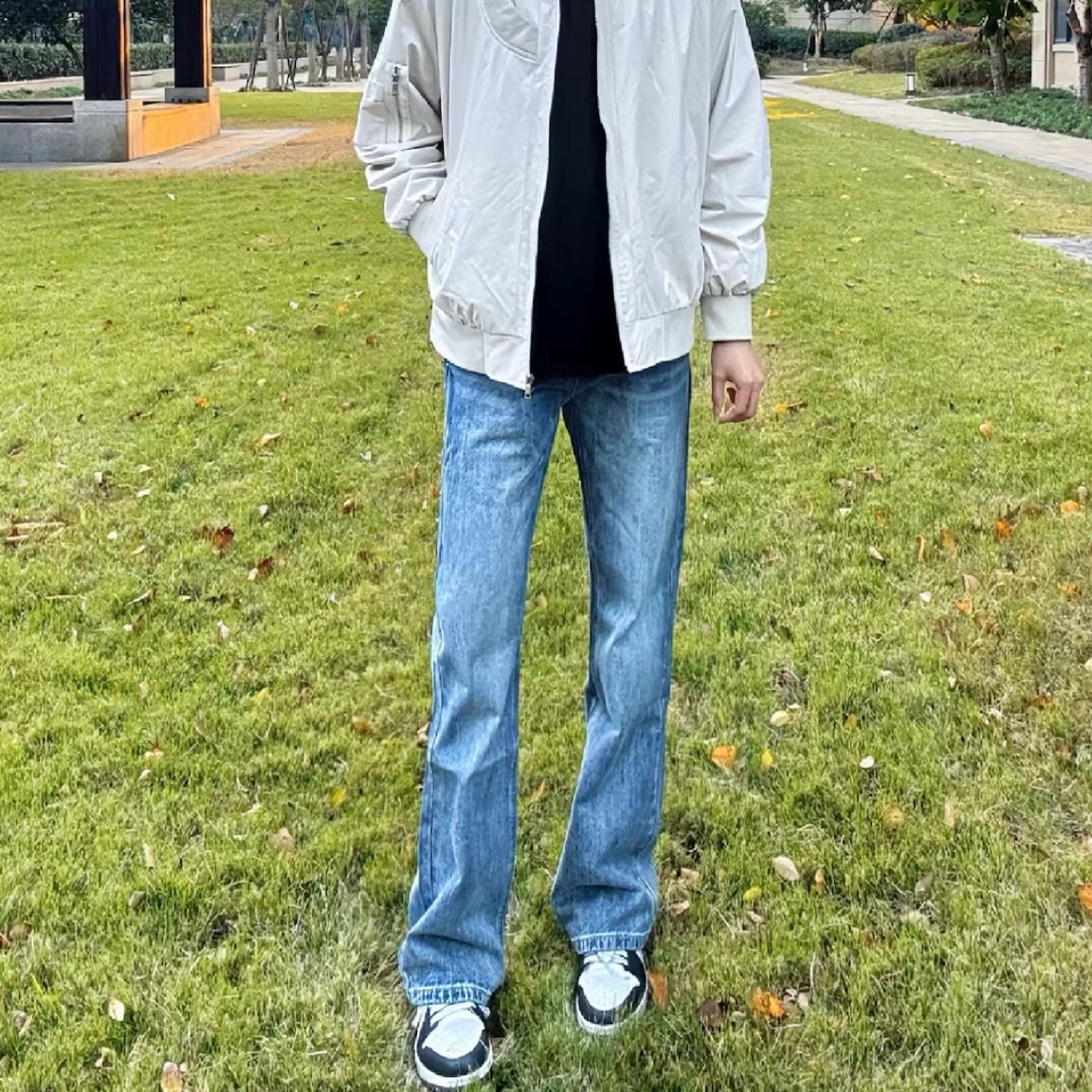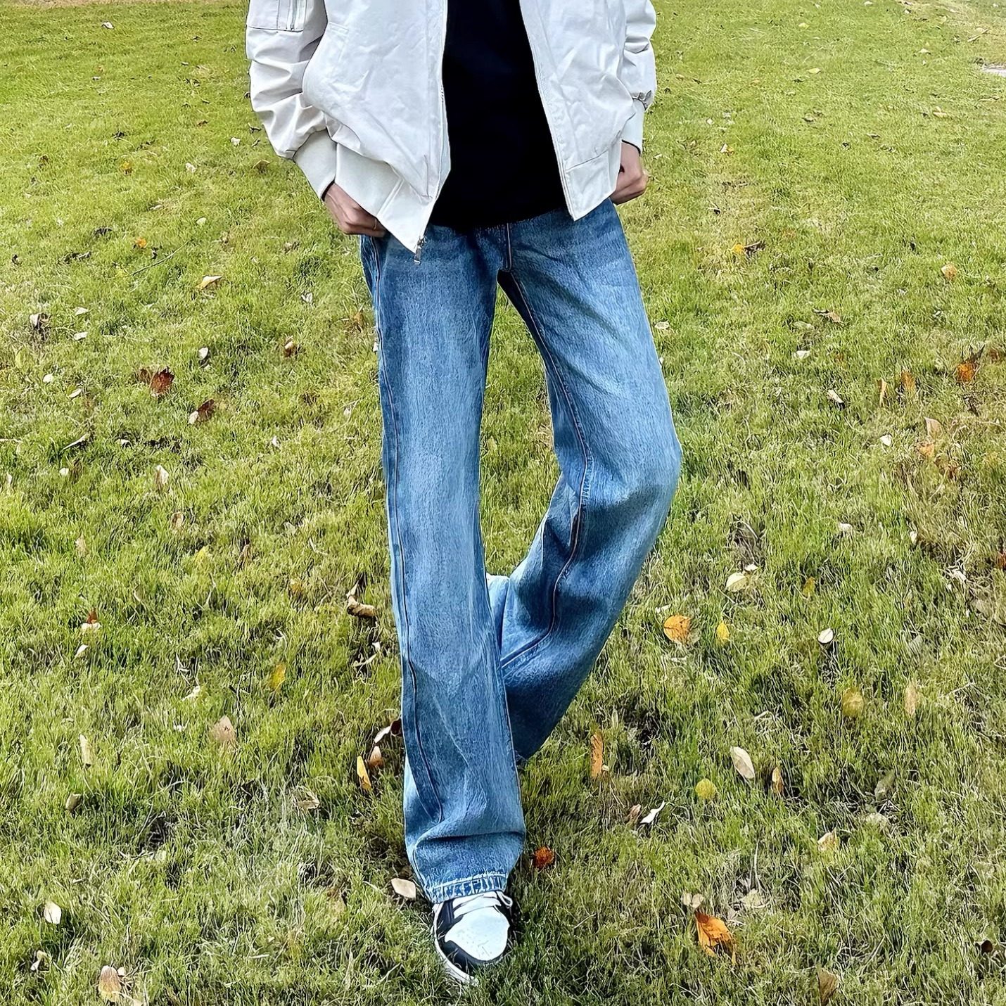 装 日常通勤高街风裤 型复古做旧休闲牛仔长裤 浅蓝水洗工艺直筒版