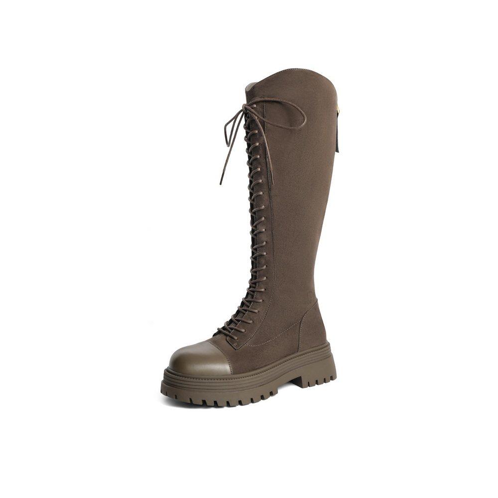百丽Belle小V靴女靴子厚底高长靴24冬显瘦弹力靴长筒靴B2241DG4