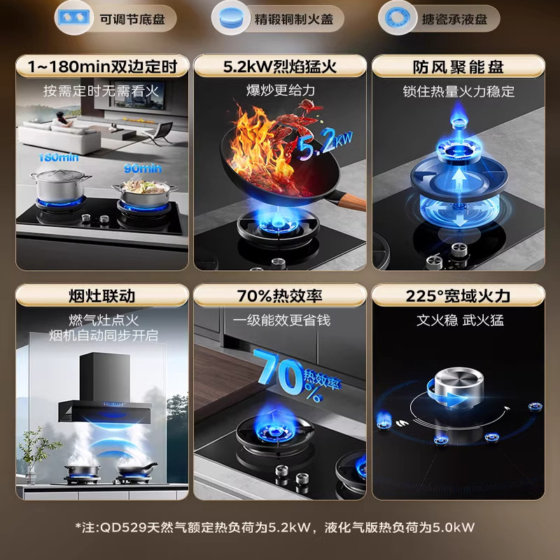荣事达煤气灶双灶家用猛火台式 双头天然液化气双眼燃气灶节能炉具