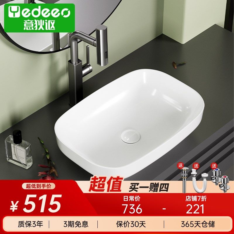 台上盆洗手盆单盆阳台家用方形洗脸盆卫生间陶瓷酒店洗漱盆一体盆