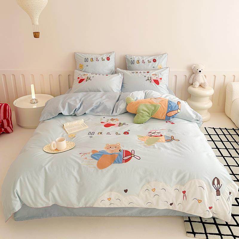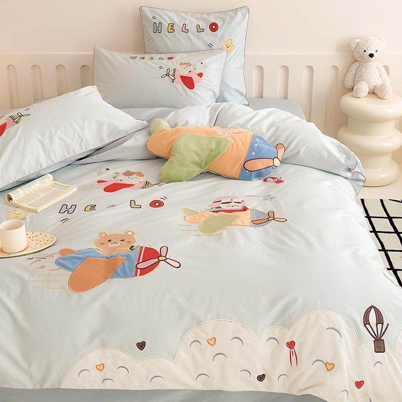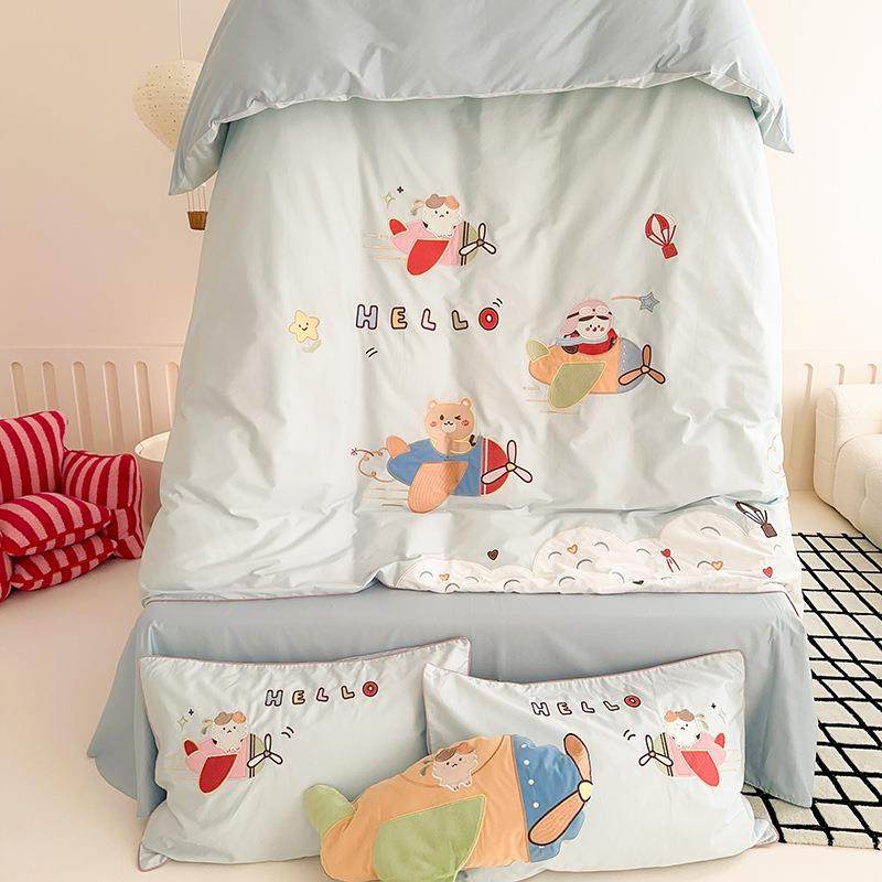 10子支全棉长0绒棉四件上套纯棉男孩被X24套三件套可爱小飞机床用