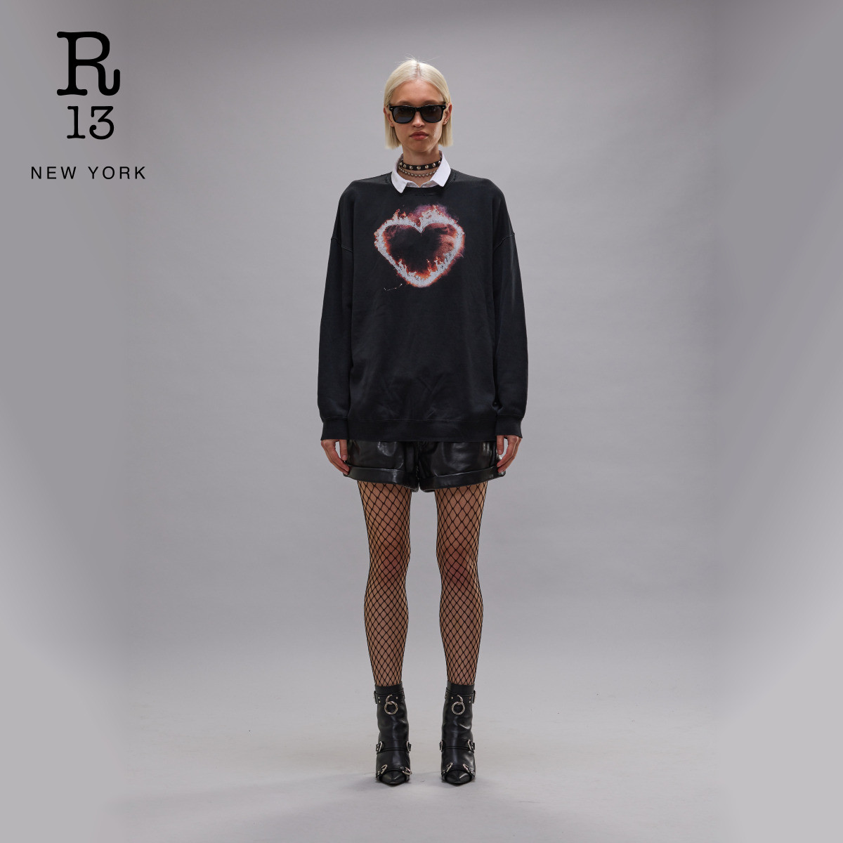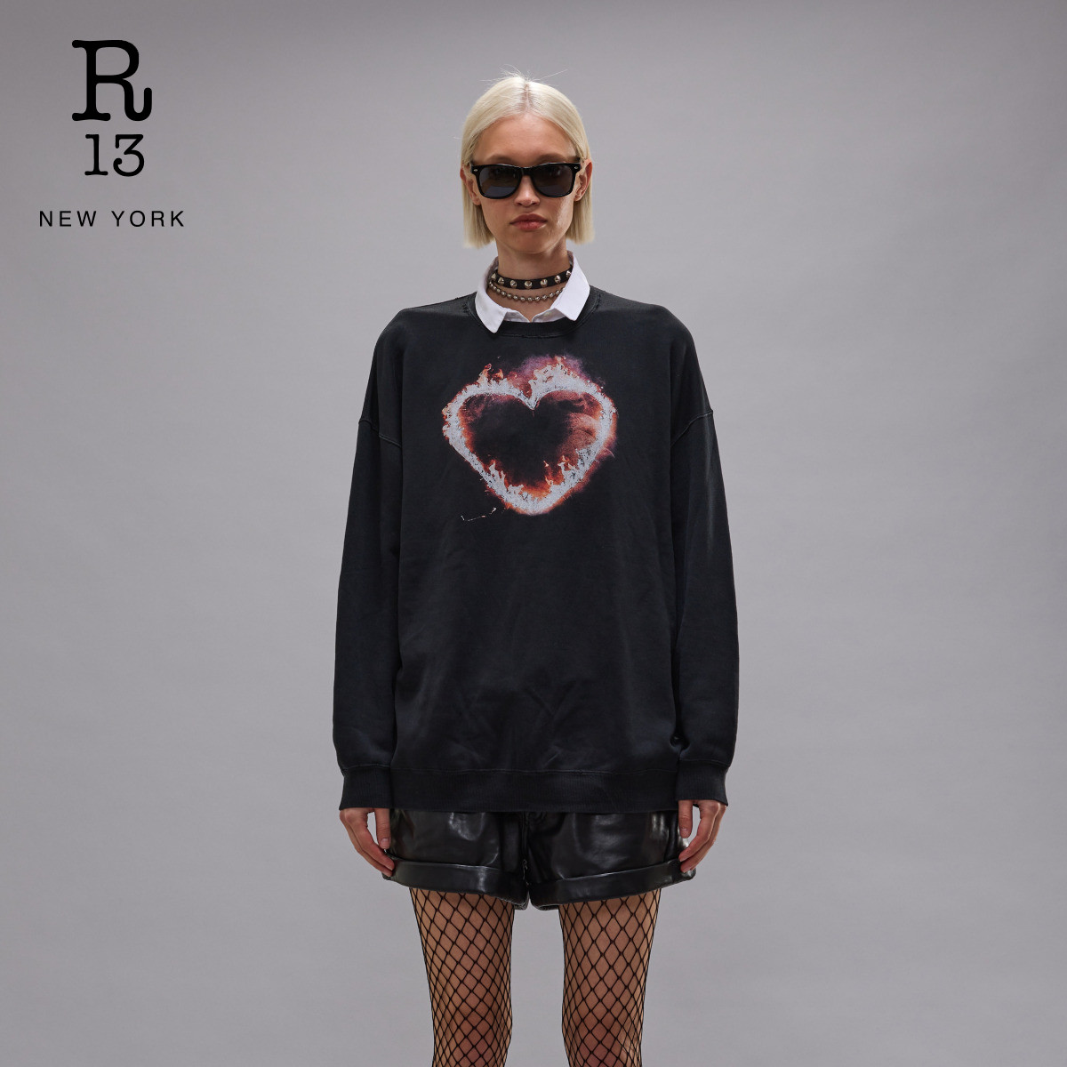 宽松圆领潮流街头风爱心图案卫衣套头衫 R13 2026早春系列