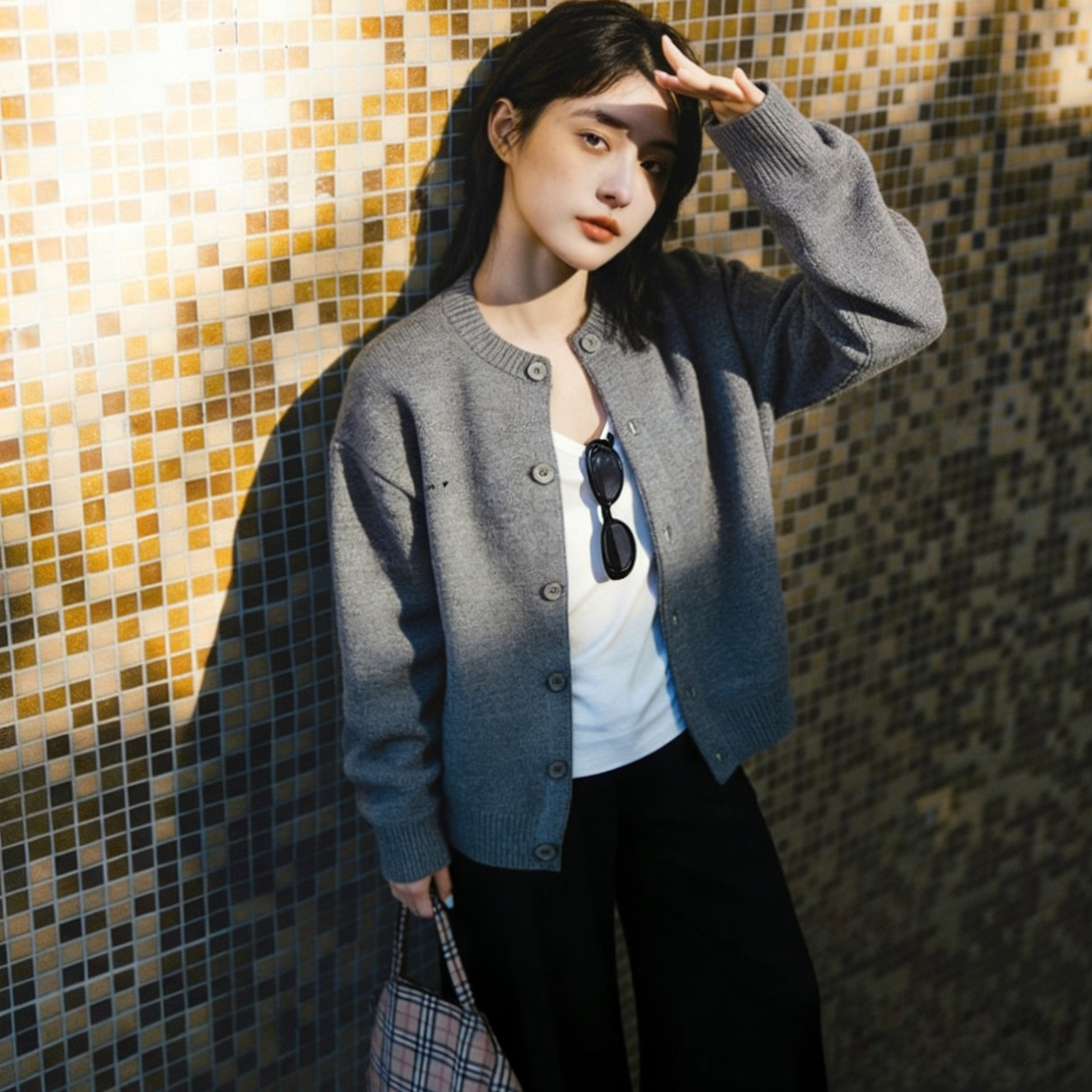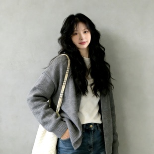 纯色简约流星复古灰高级感毛衣外套女秋冬韩系穿搭加厚外穿软糯衫