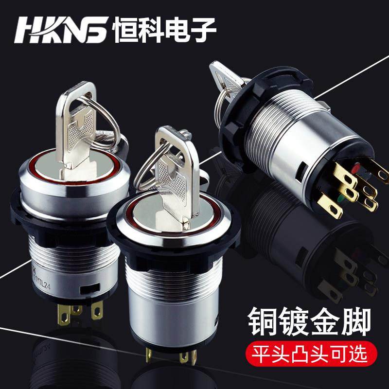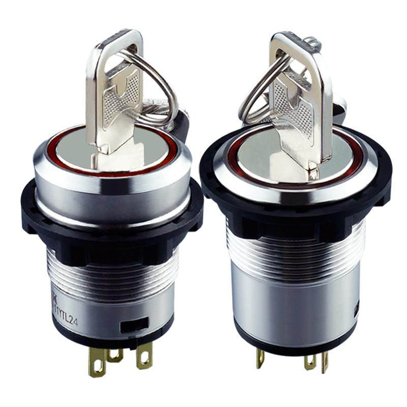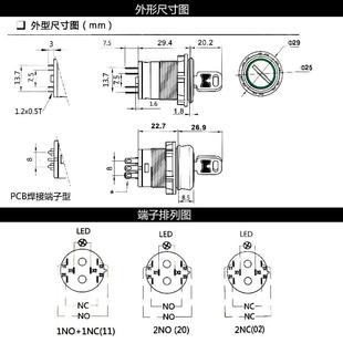 带灯钥匙开 金属钥匙钮M22mm1开 2常闭 2常开 关防水2档 1闭
