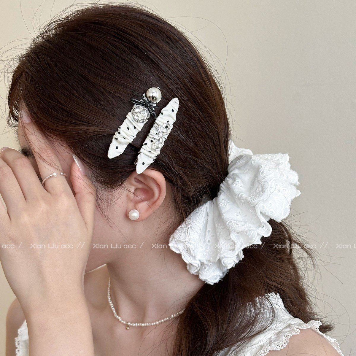 2026时尚 甜美侧边夹感碎发刘海 韩系ins风波点蝴蝶结发夹2025新款