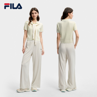 斐乐官方女士针织长裤 子基础简约休闲阔腿裤 2026夏季 裤 新款 FILA