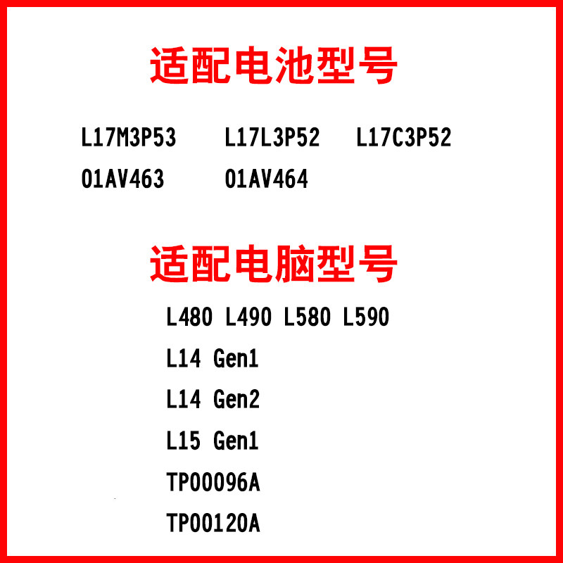 R580 01AV464 01AV463 适用 TP00094A L580 L17L3P52 电池 联想L480