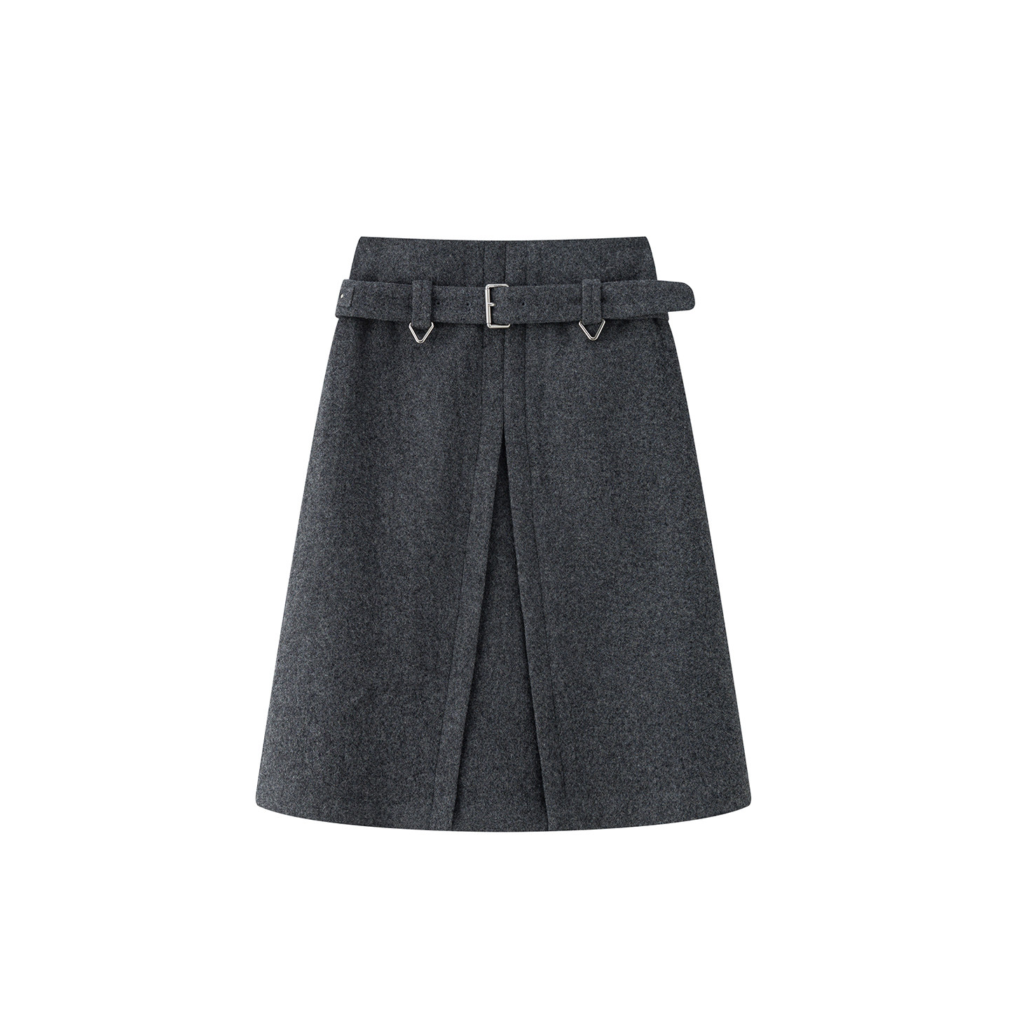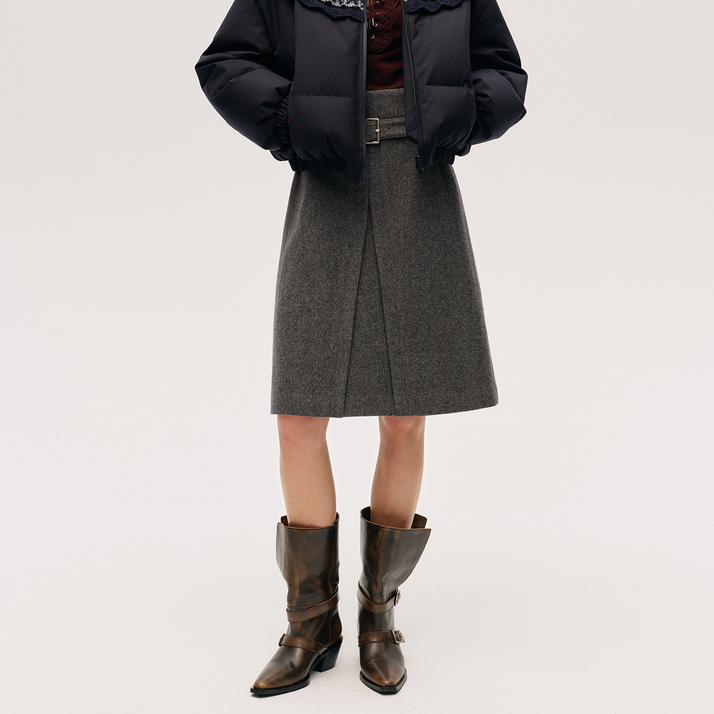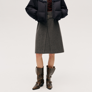 格雷系灰色毛呢中裙大码 到膝盖半身裙女胖mm显瘦小个子a字百褶裙