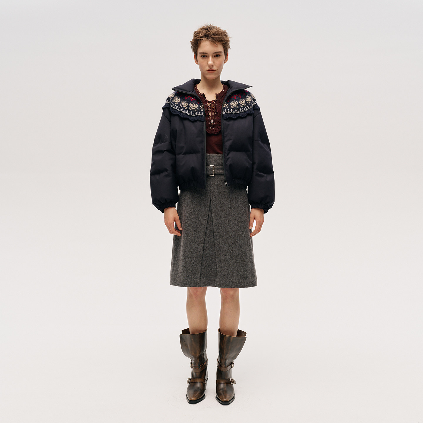 高级重工印花设计半身裙 高腰显瘦法式 亮片短裙女2025冬季 流行爆款