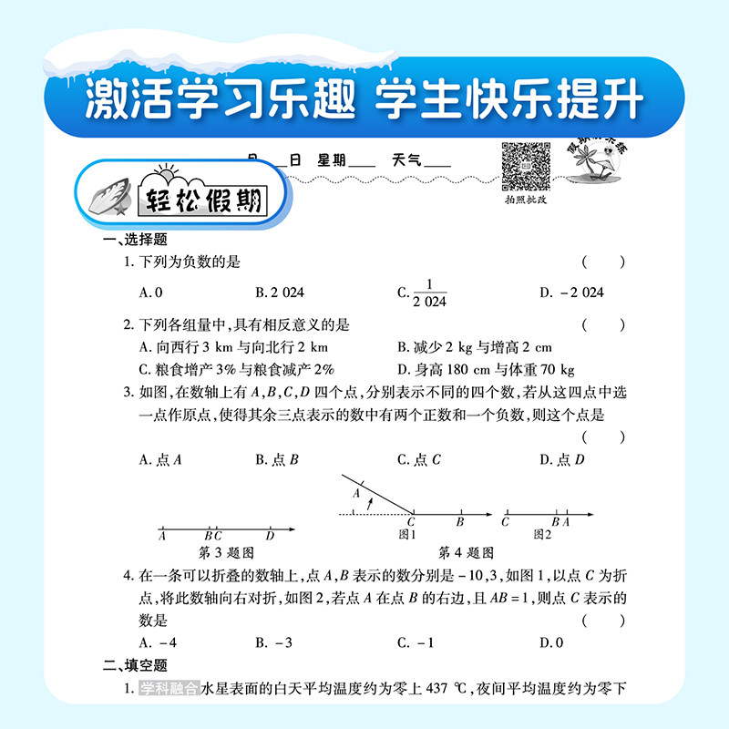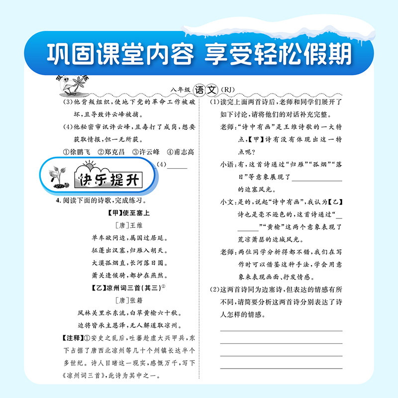假期快乐练寒假作业复习预习必刷题同步练习册初一初二中学生 荣恒初中寒假作业七年级八年级语文数学英语物理人教版 2026春季 新版