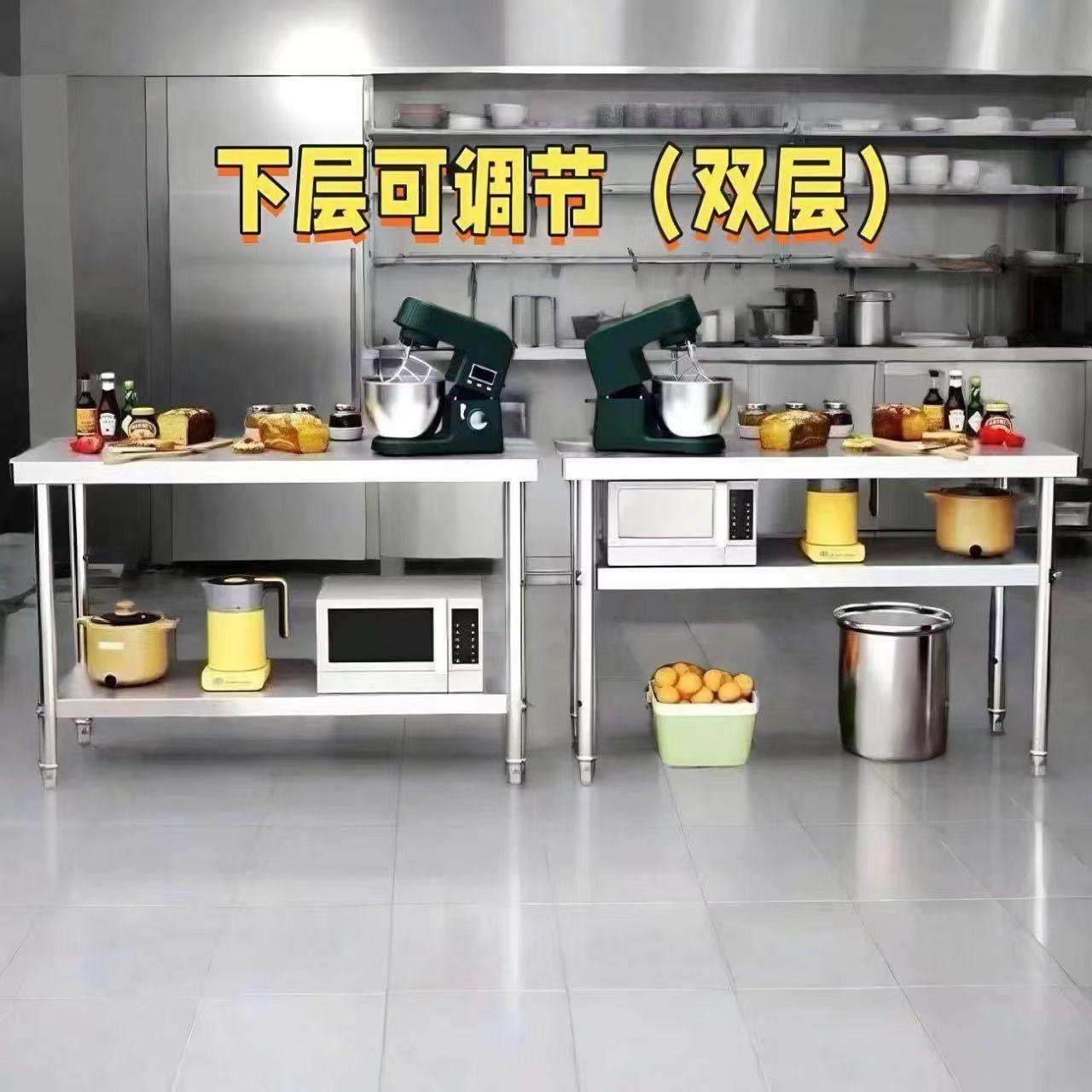 不锈钢工作台厨房家用操作台商用双层桌子专用案板后厨置物架打荷