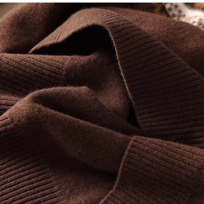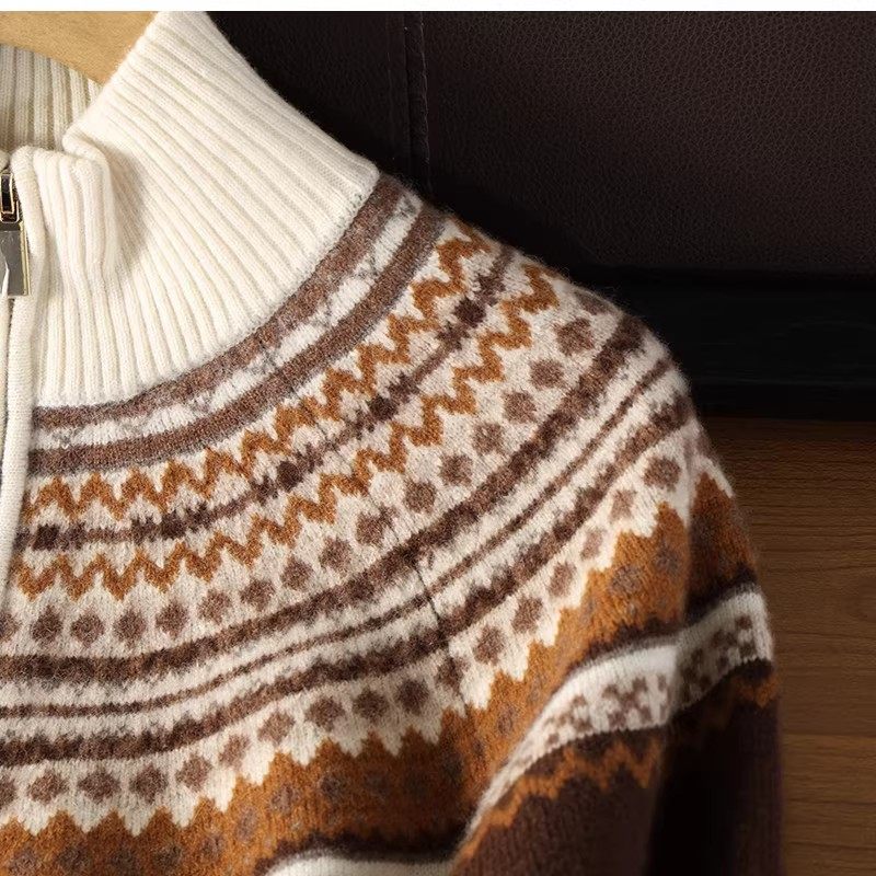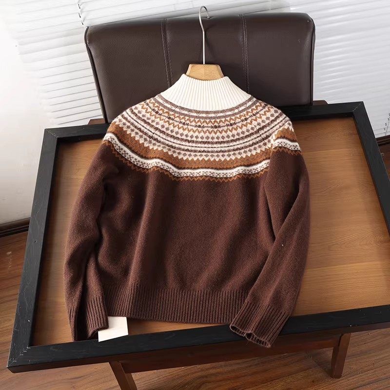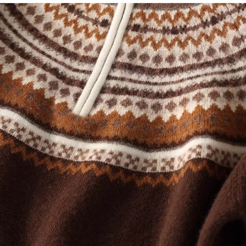 女1219 针织衫 小he家 高货100绵羊毛复古百搭费尔岛提花半拉链长袖