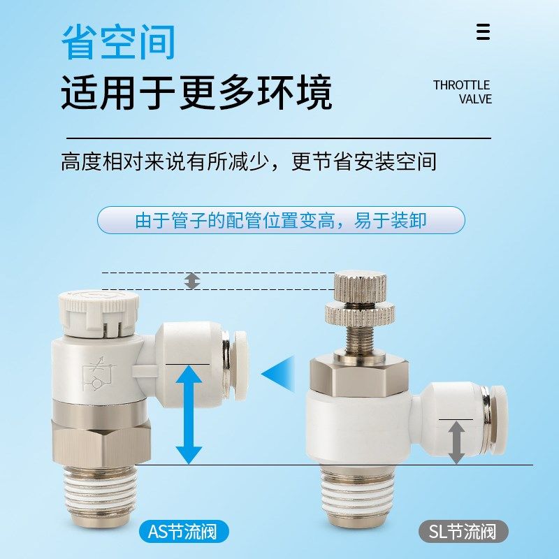 06SA 04A气动气管接头01 SMC型气缸可调速阀排气节流阀AS1201F