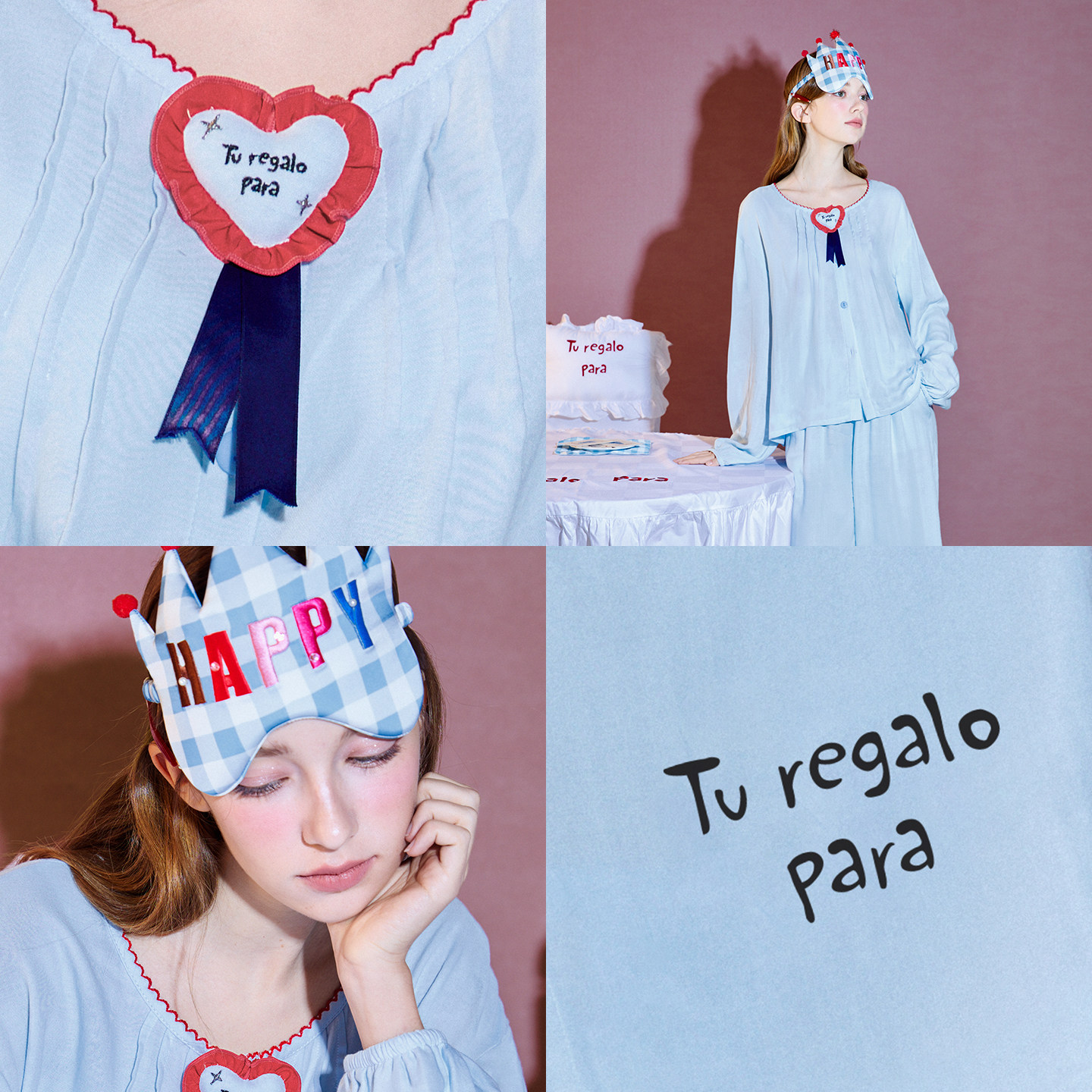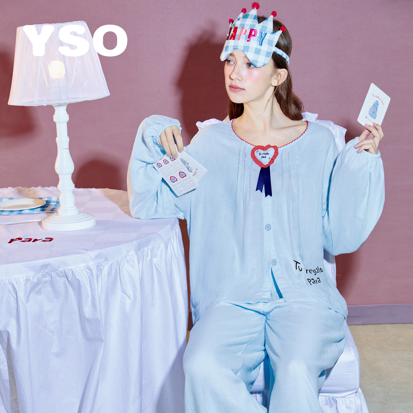 双层纱水蓝色甜美可爱家居服套装 睡衣女春夏新款 礼物系列 yso