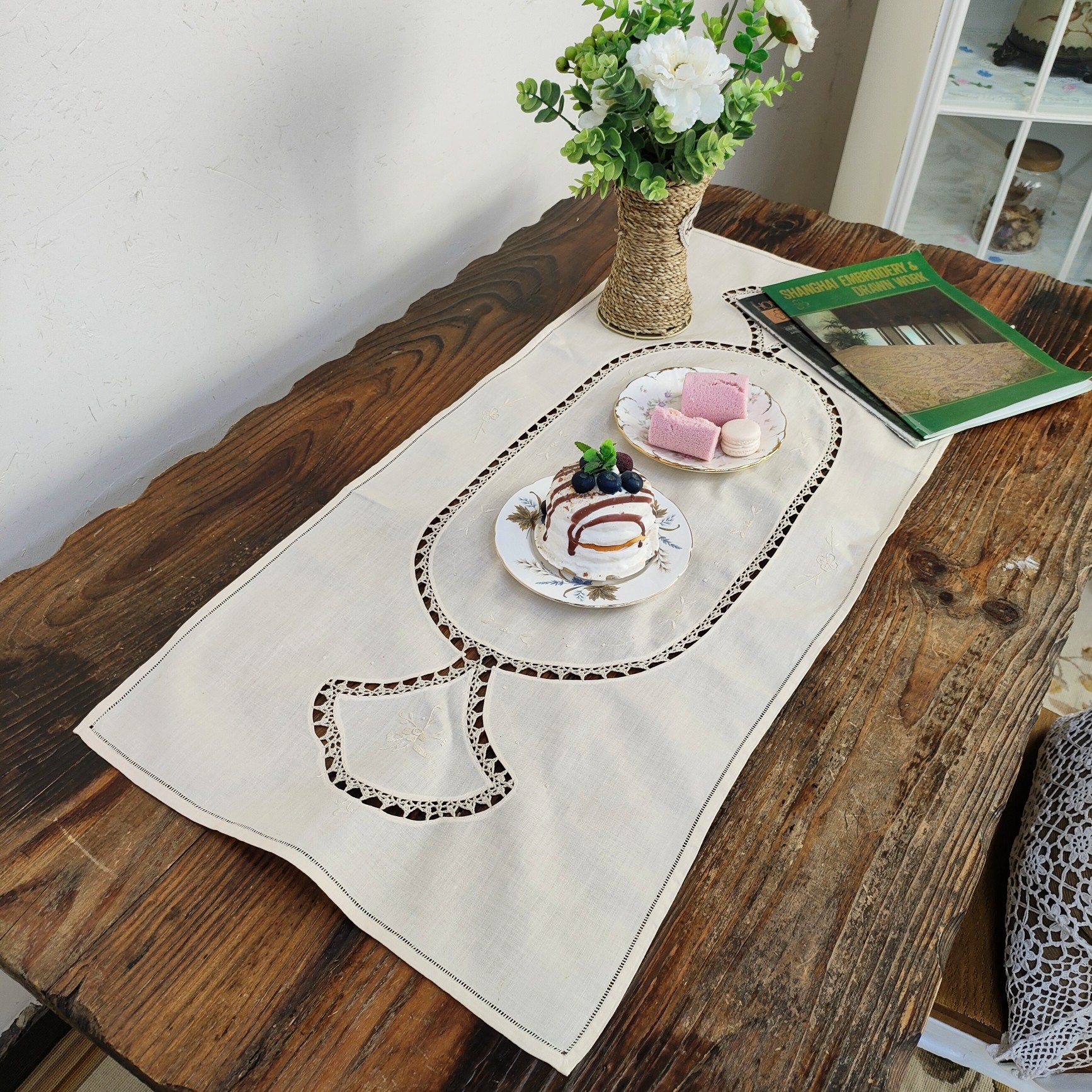 35cm有氧化 长桌旗本色棉质85 F218 手绣糖果款