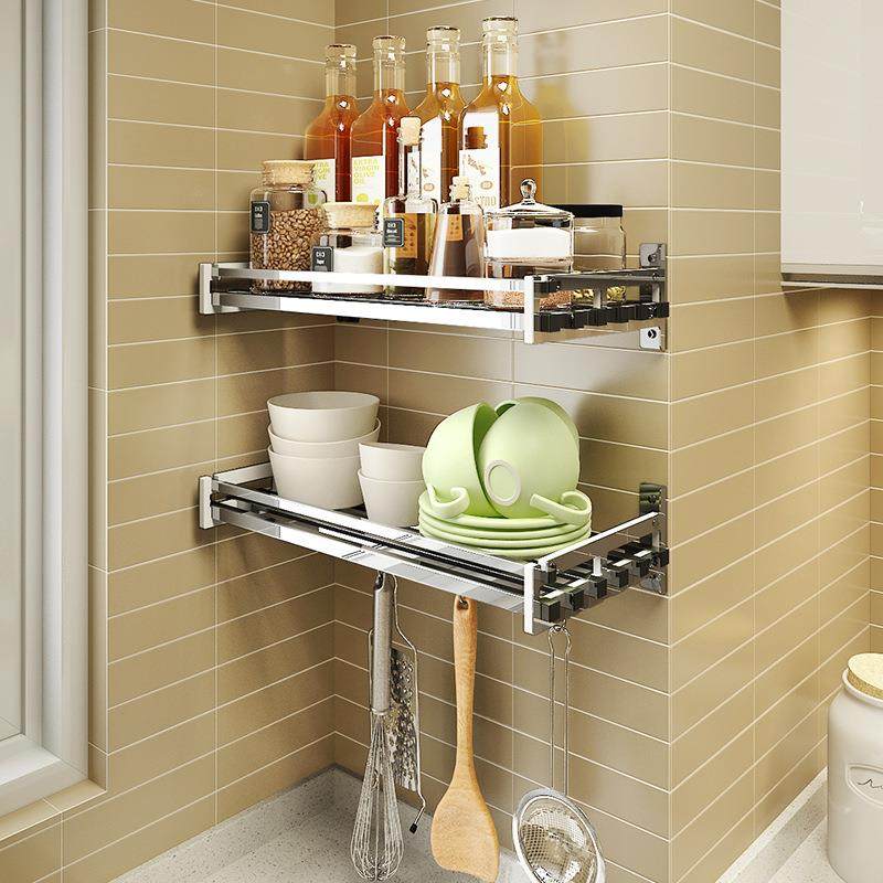 免孔304不锈打调料架GJR厨房用品一字层板壁架挂式 调钢味料瓶收纳