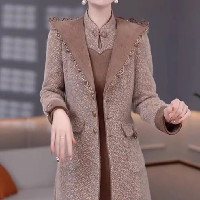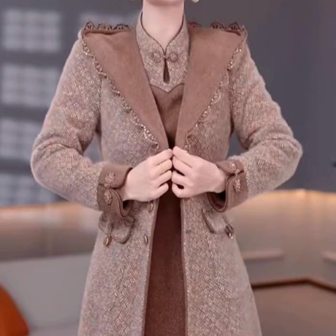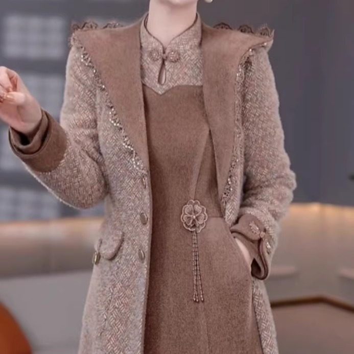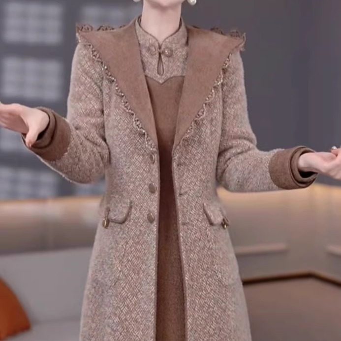 高级贵妃绒超声波夹棉大衣 2025秋冬加厚保暖套裙 连衣裙两件套装
