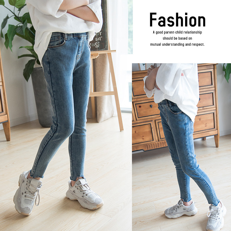 秋装 中大童洋气紧身小脚裤 2024新款 春秋休闲弹力长裤 版 女童牛仔裤