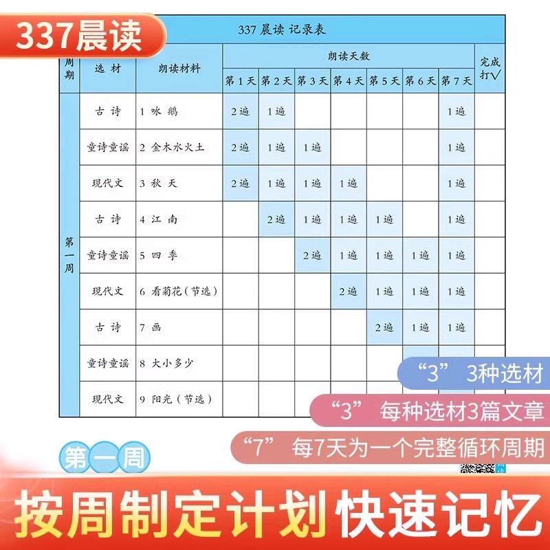 337晨读法打卡表小学一二三四五六年级上下册小学生每日晨读377美文暮诵晚诵扩句法语文英语美文古诗文优美句子素材积累小橙同学