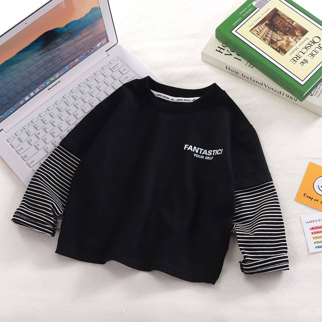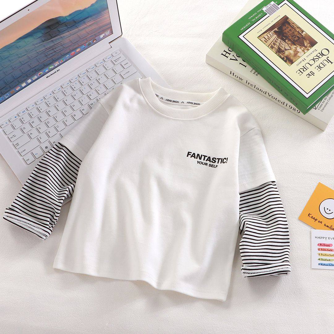 休闲百搭上衣 春秋男女童韩版 儿童纯棉长袖 T恤中小童假两件打底衫
