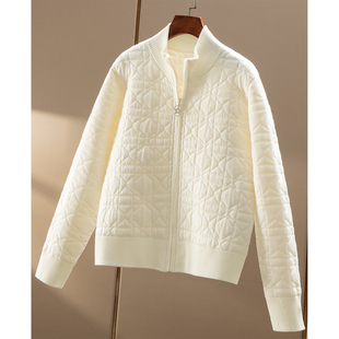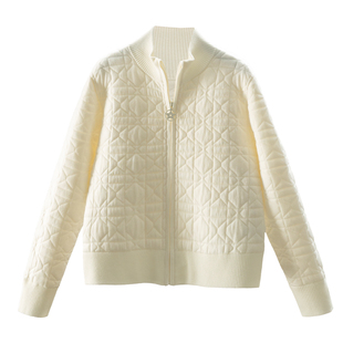 H春上7号 法柜笈简重工菱格绗缝100羊毛立领棉服D女60I2 温暖加倍