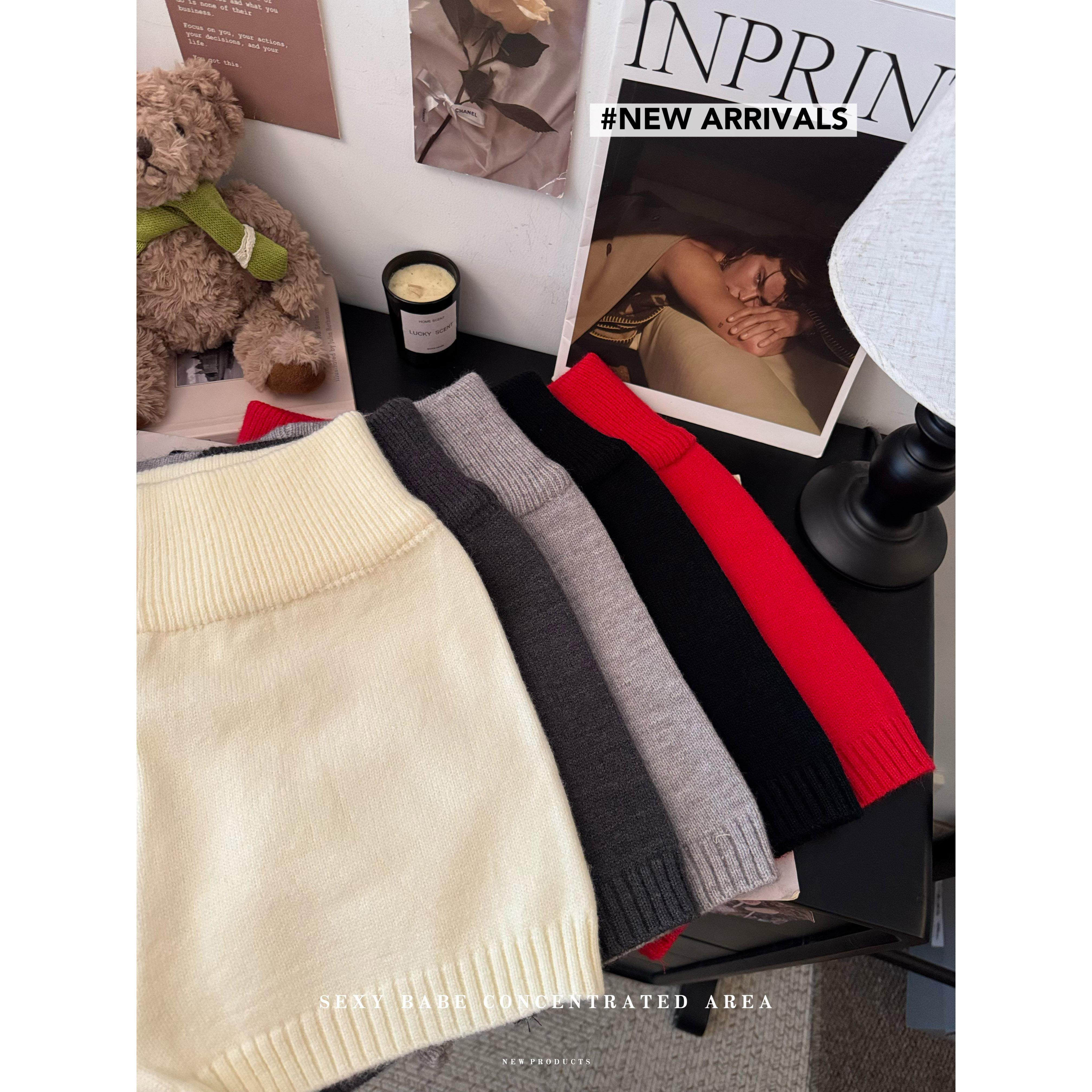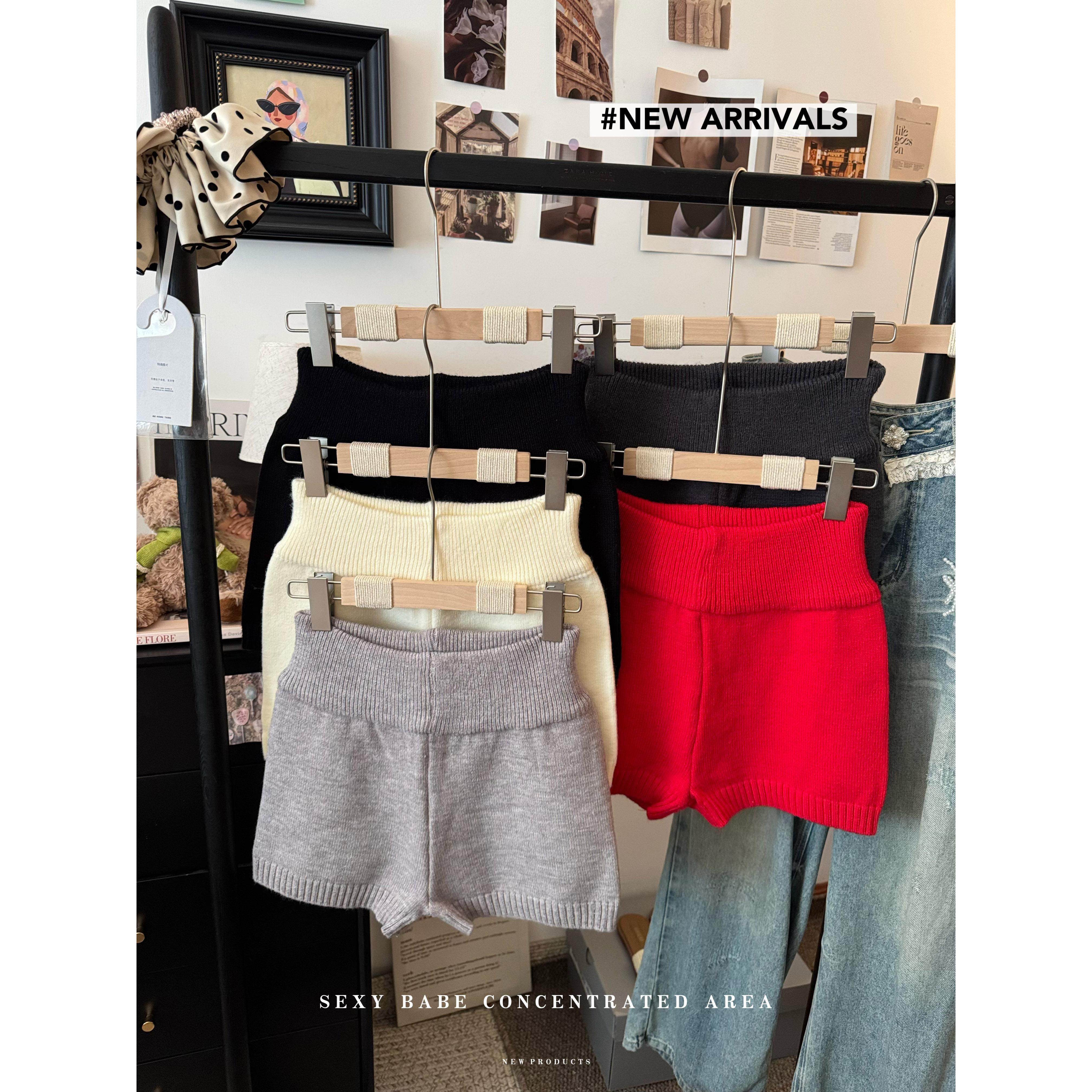 休闲裤 短裤 运动裤 直筒裤 女秋冬百搭紧身显瘦热裤 灰色针织高腰毛裤