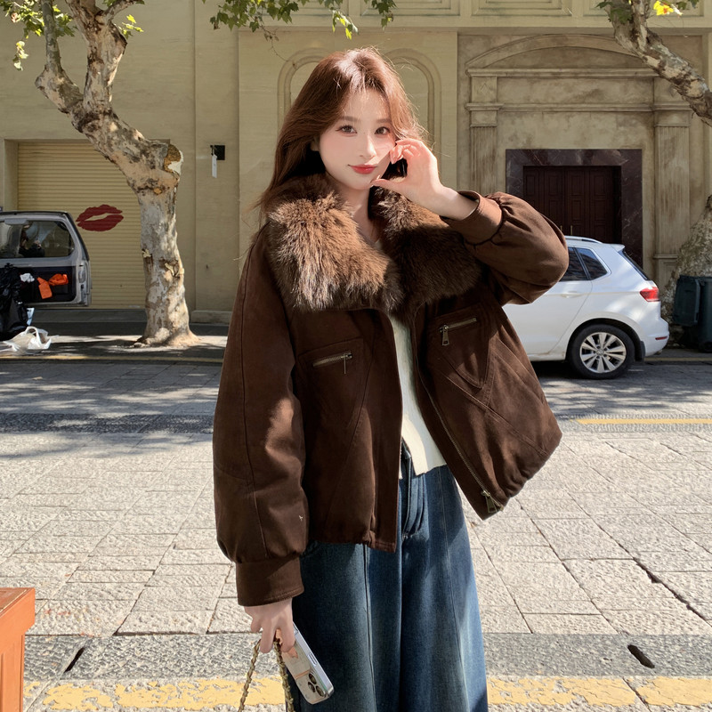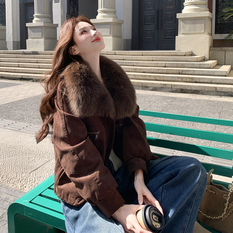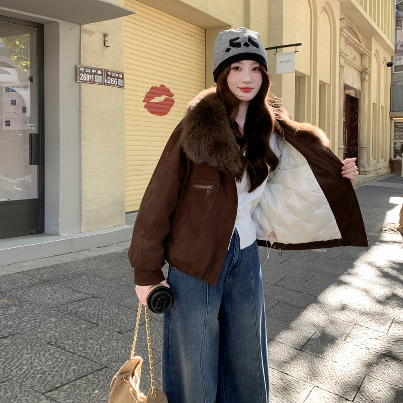 冬季 羽绒服女款 派克服内胆厚外套斜门襟可拆卸毛领短款 FDR官方店